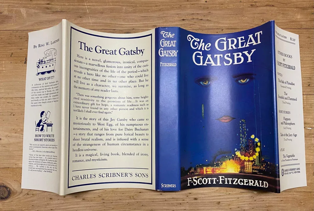 For modern first editions, the dust jacket is often more valuable than the book itself. In the early 20th century, most owners discarded these wrappers, making surviving examples rare. For instance, a first edition of The Great Gatsby by F. Scott Fitzgerald: