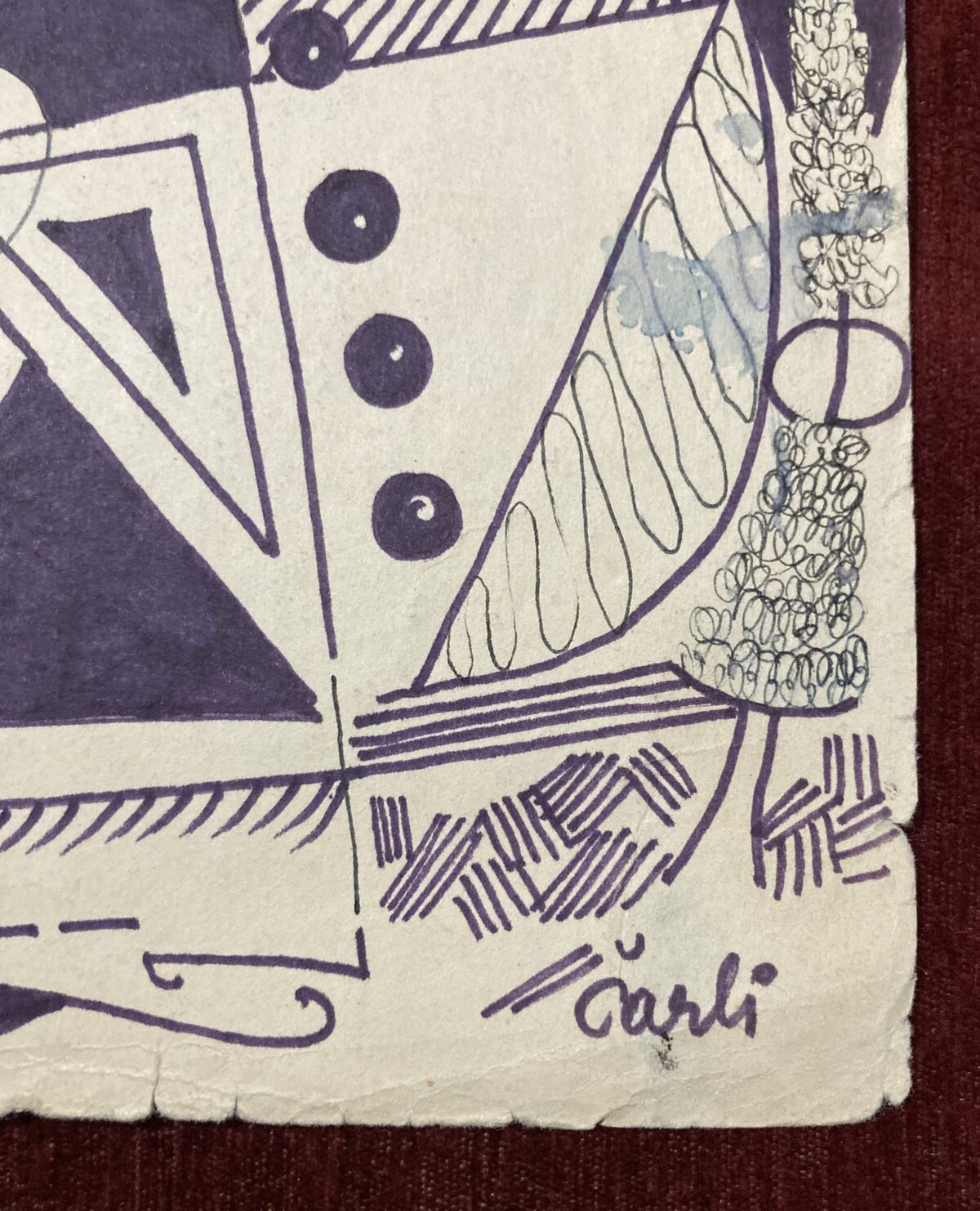 Original pen marker abstract drawing on paper from 1970s unknown artist, signed as CARLI (Charie)