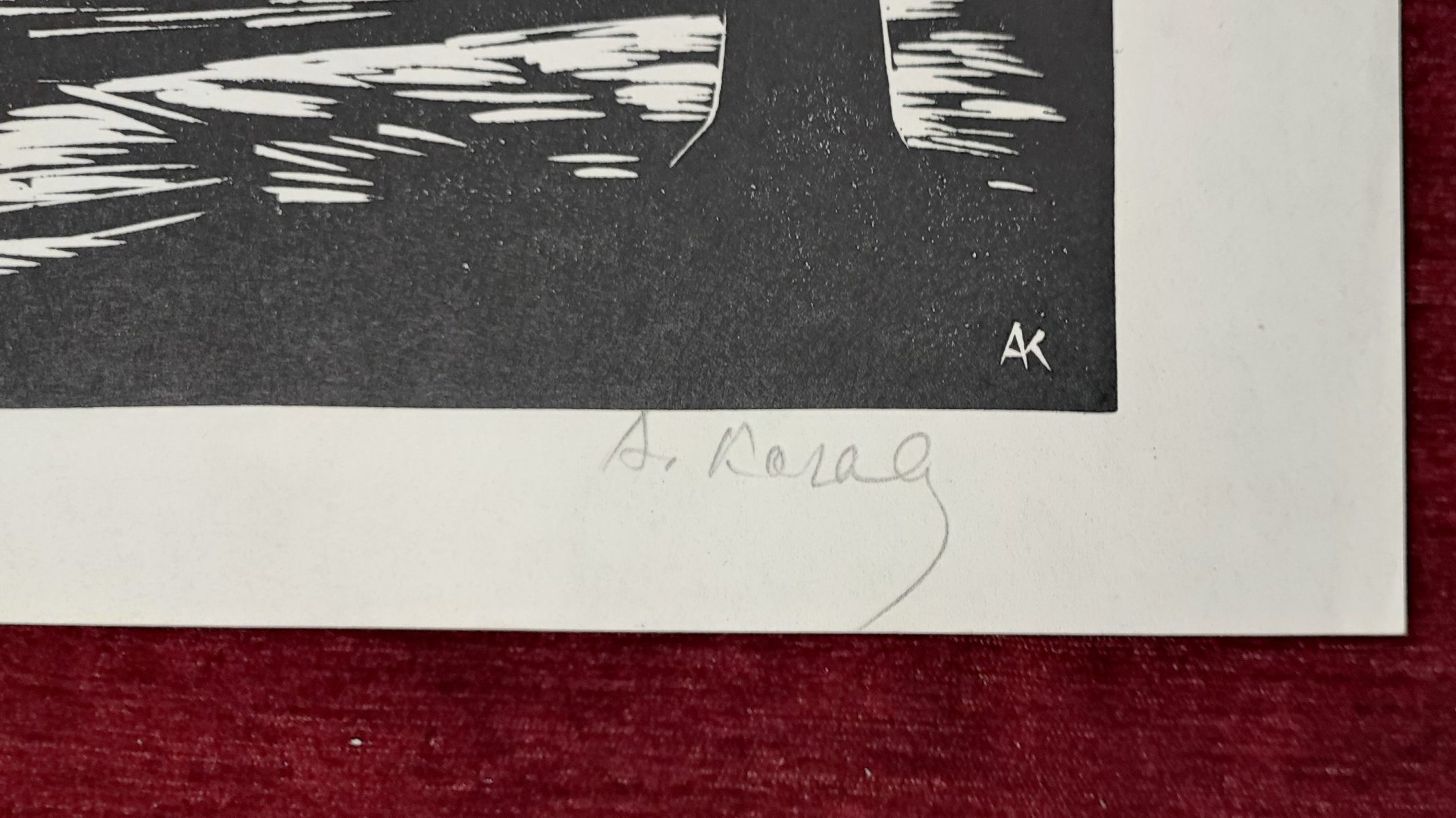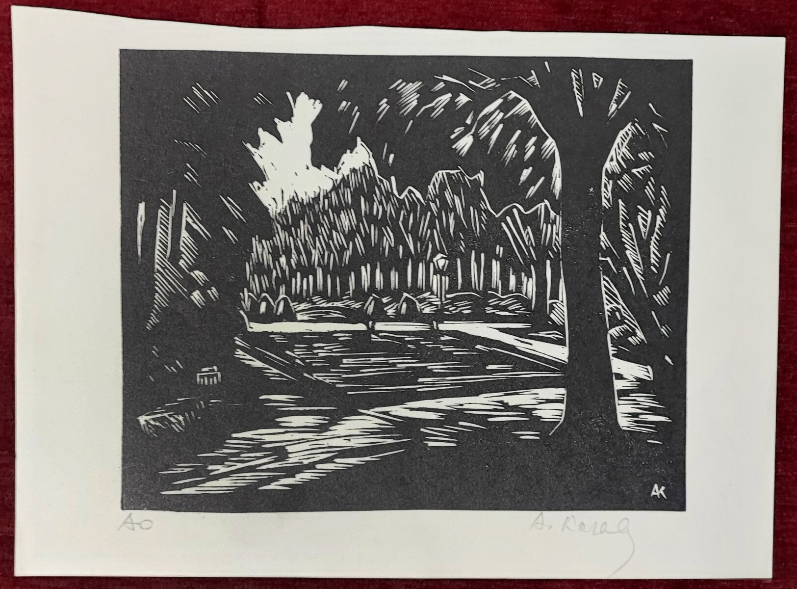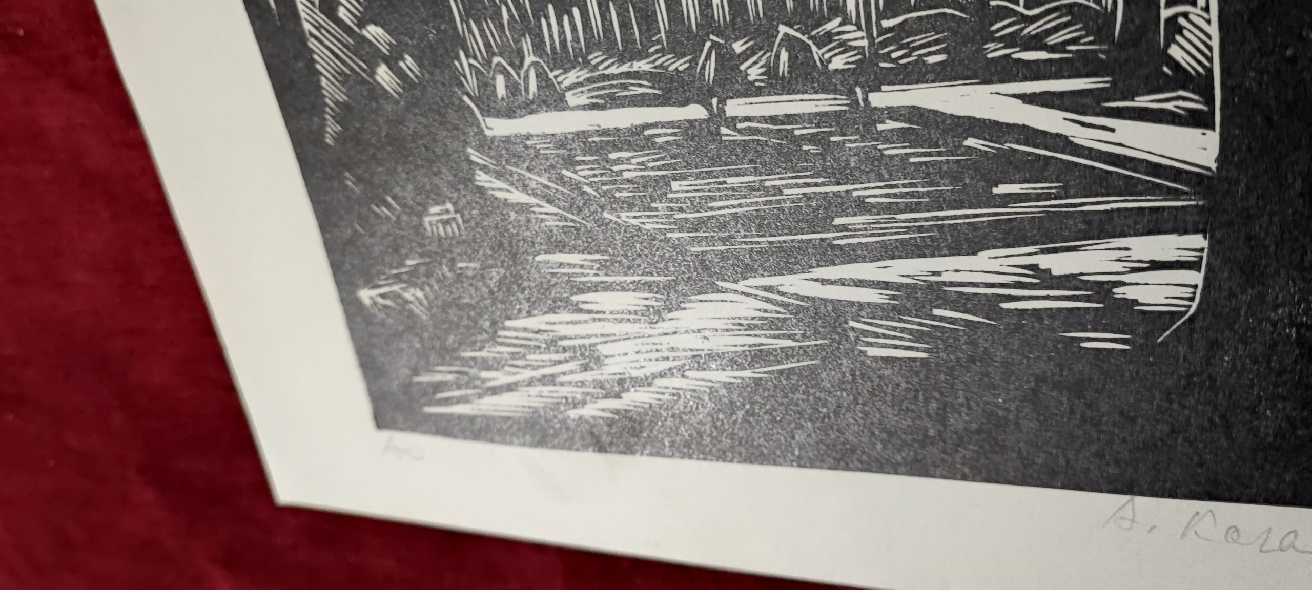 Original signed woodcut by KAROLY ANDRUSKO (1915-2008) Károly Andruskó was born in Senta, Serbia. Andruskó began as a typographer, but moved to the woodcut and the linocut, both in color and black-and-white. He is well known of his limited editions, miniature books and ex libris works.