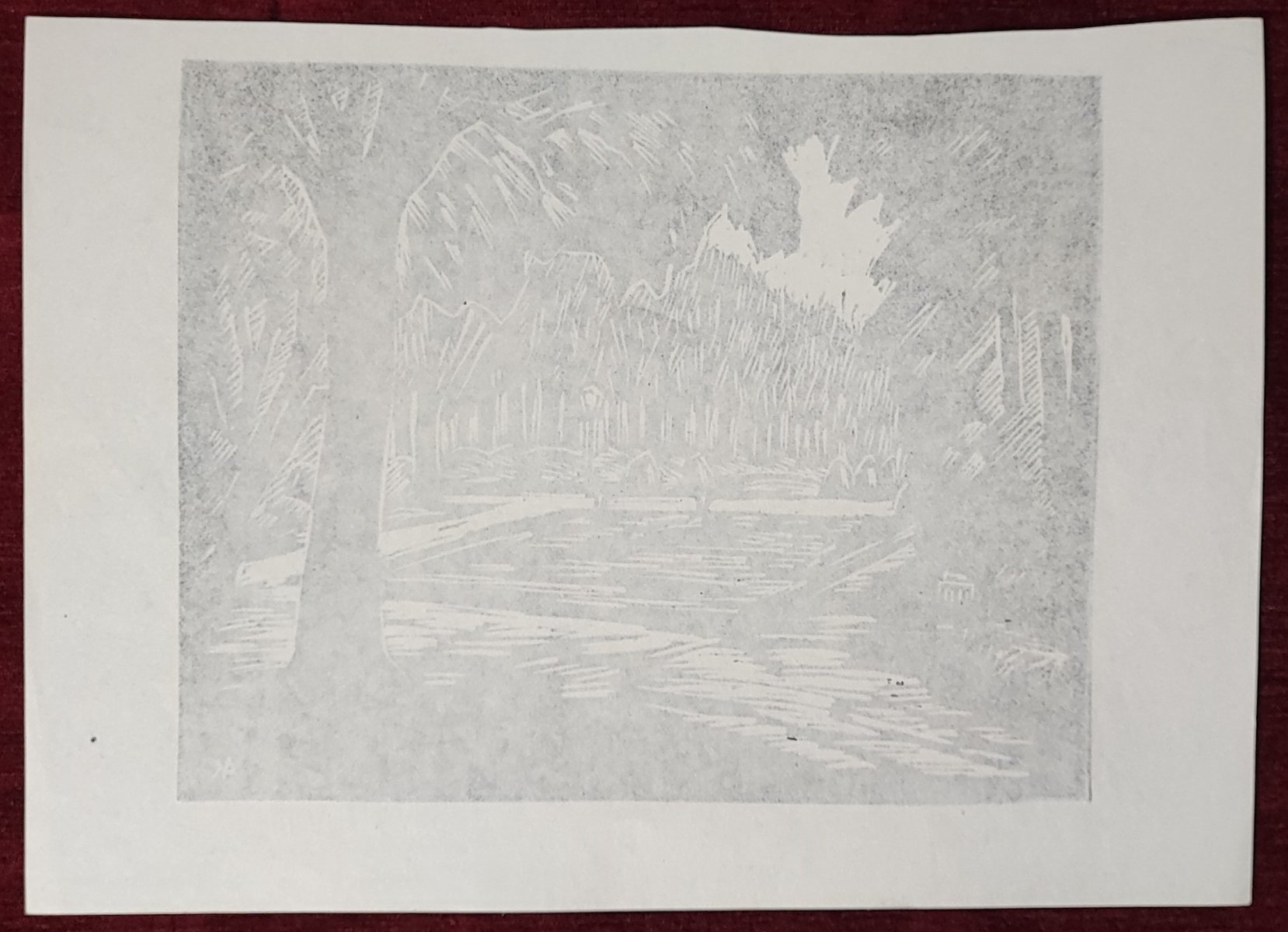1970s Original signed woodcut Károly Andruskó Trees Landscape Forest