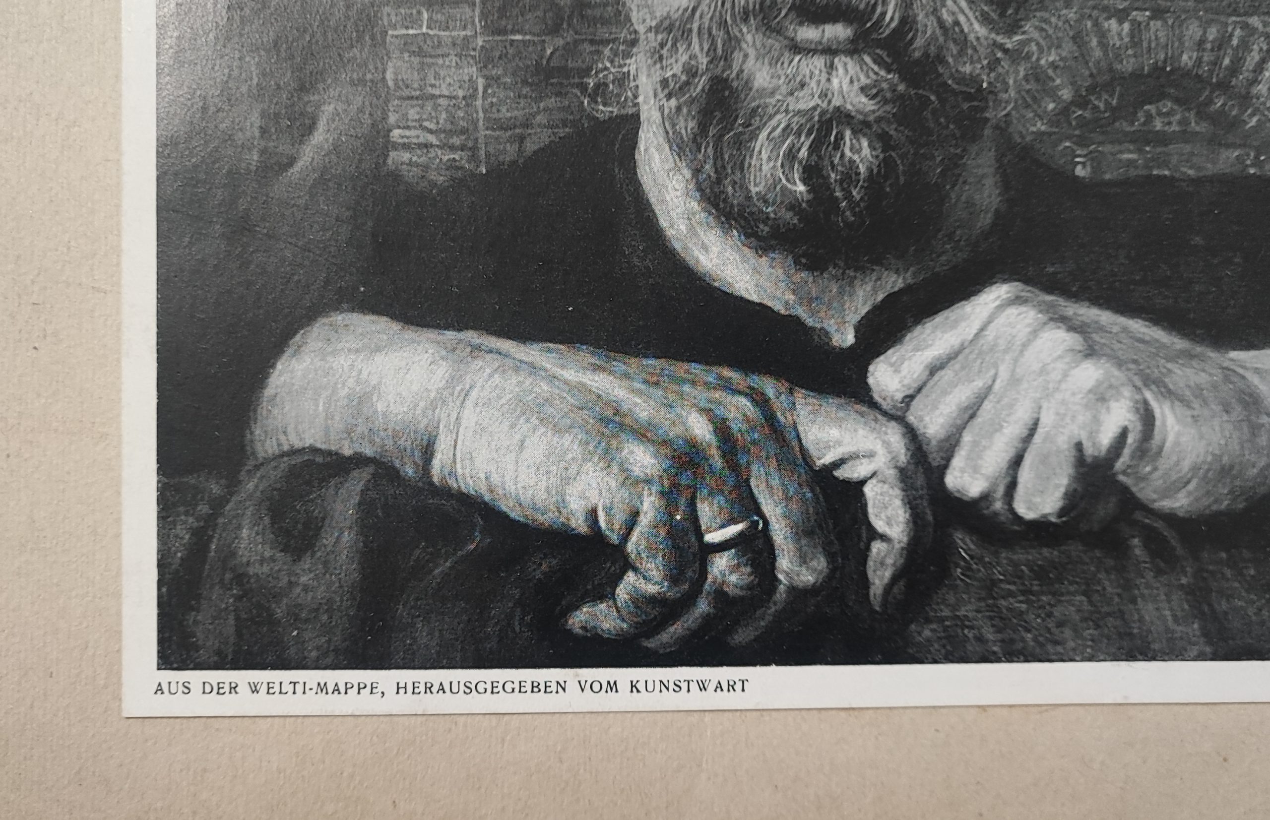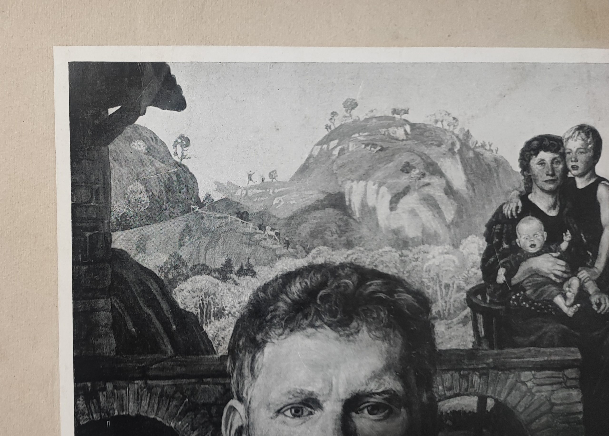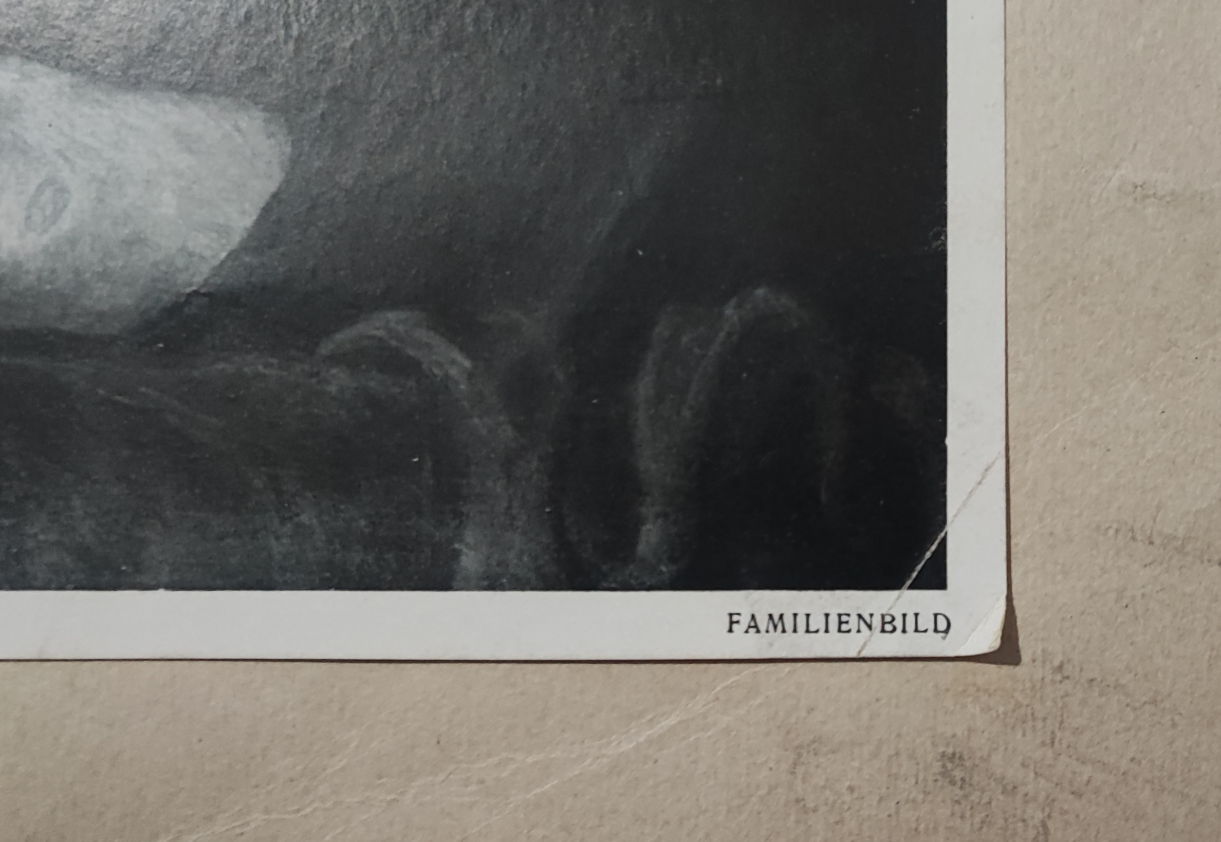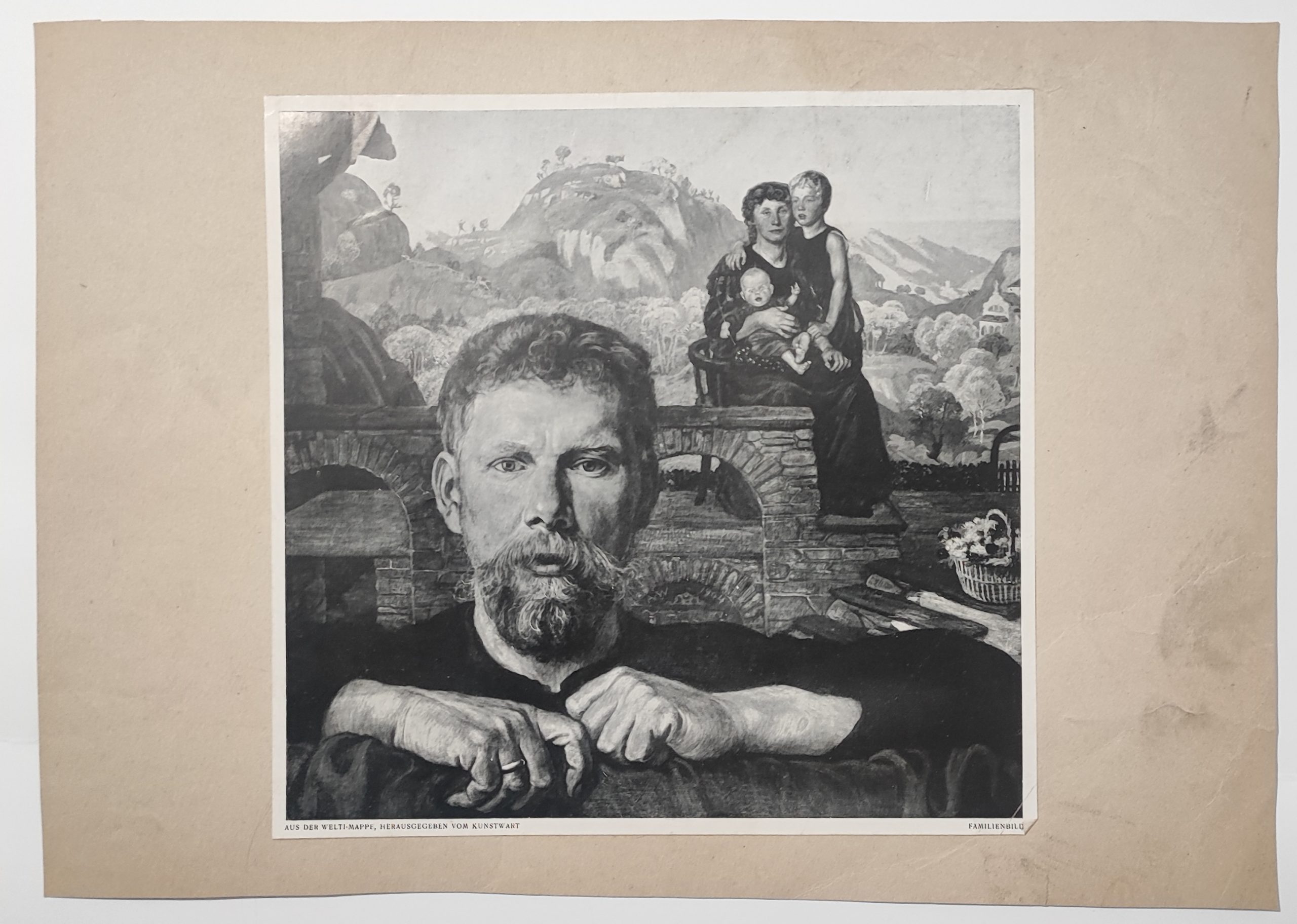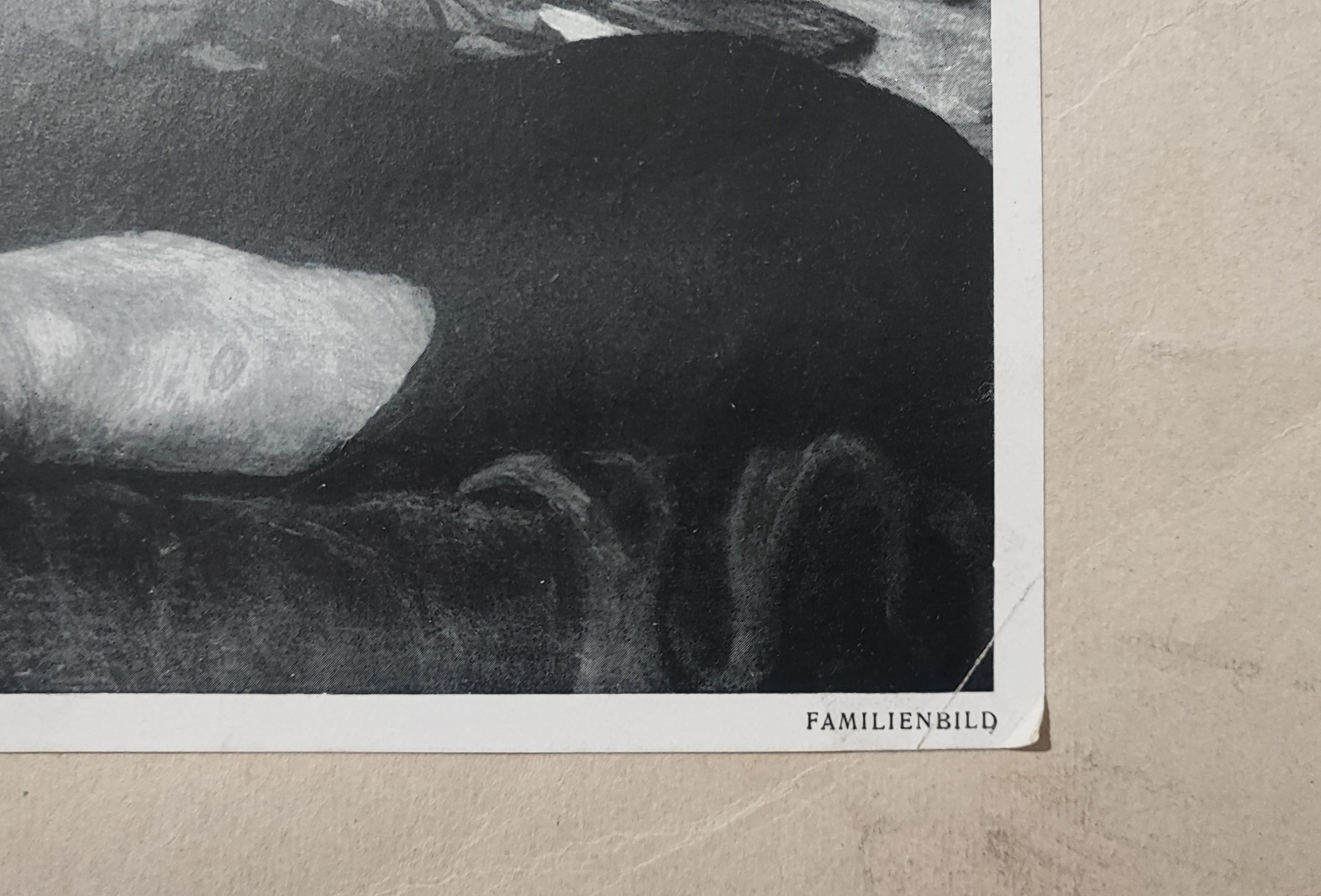 The antique decorative print is showing the family portrait. From Der Welti Mappe, published by G. D. W. Callwey in Munich, 1925.