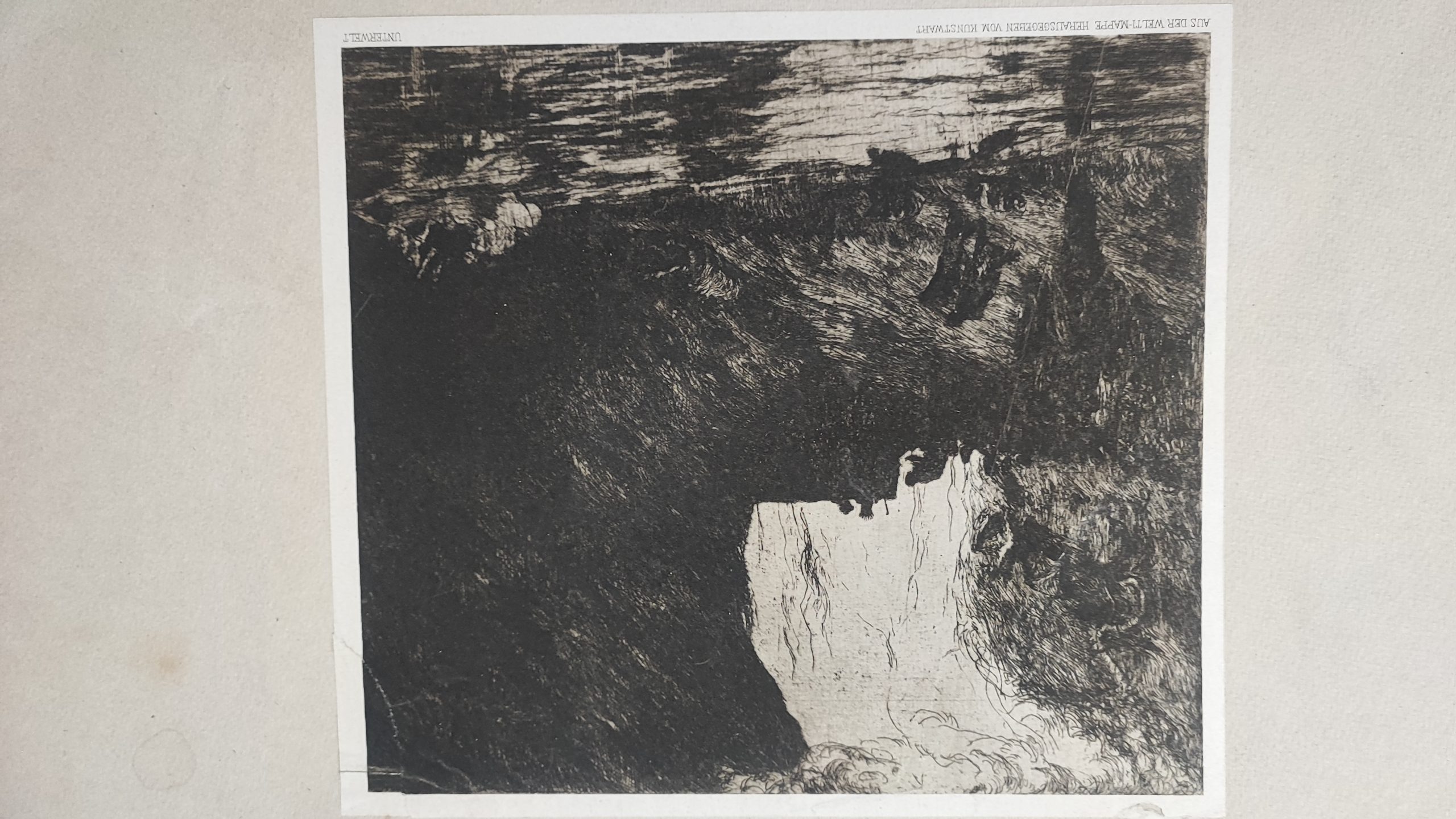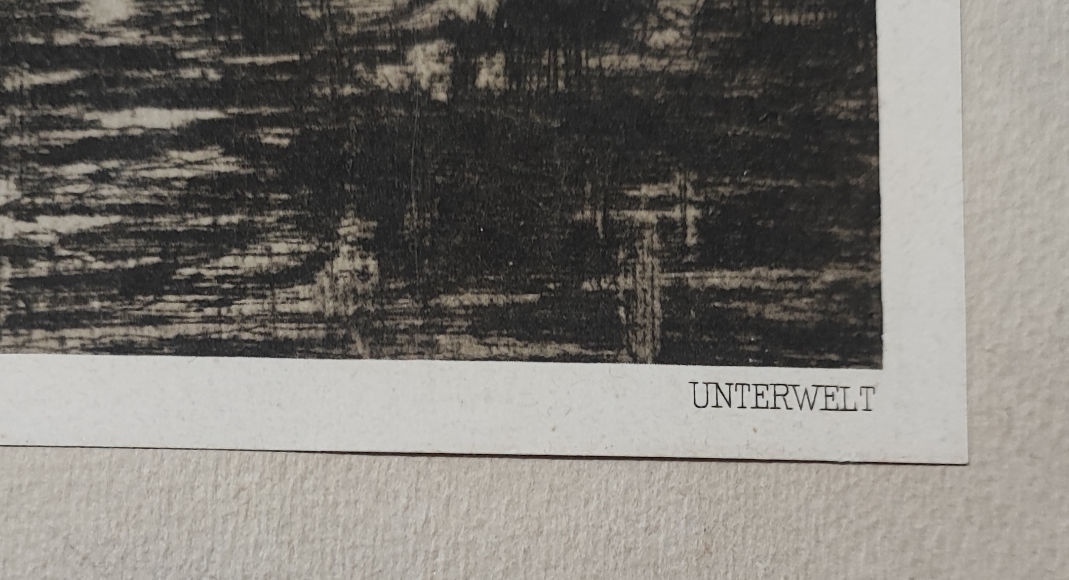 Antique decorative map showing the scene of the Underworld (Unterwelt) from Der Welte Mappe, published by G. D. W. Callwey, in Munich in 1925.