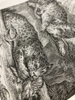 A wonderful example of two leopards devouring prey in their natural habitat. Made by one of the most famous German engravers of animals, Johann Elias Ridinger. This engraving may become a great addition to any collection or can be presented as a unique gift that will brighten the recipient’s wall and give it a touch of the antique.