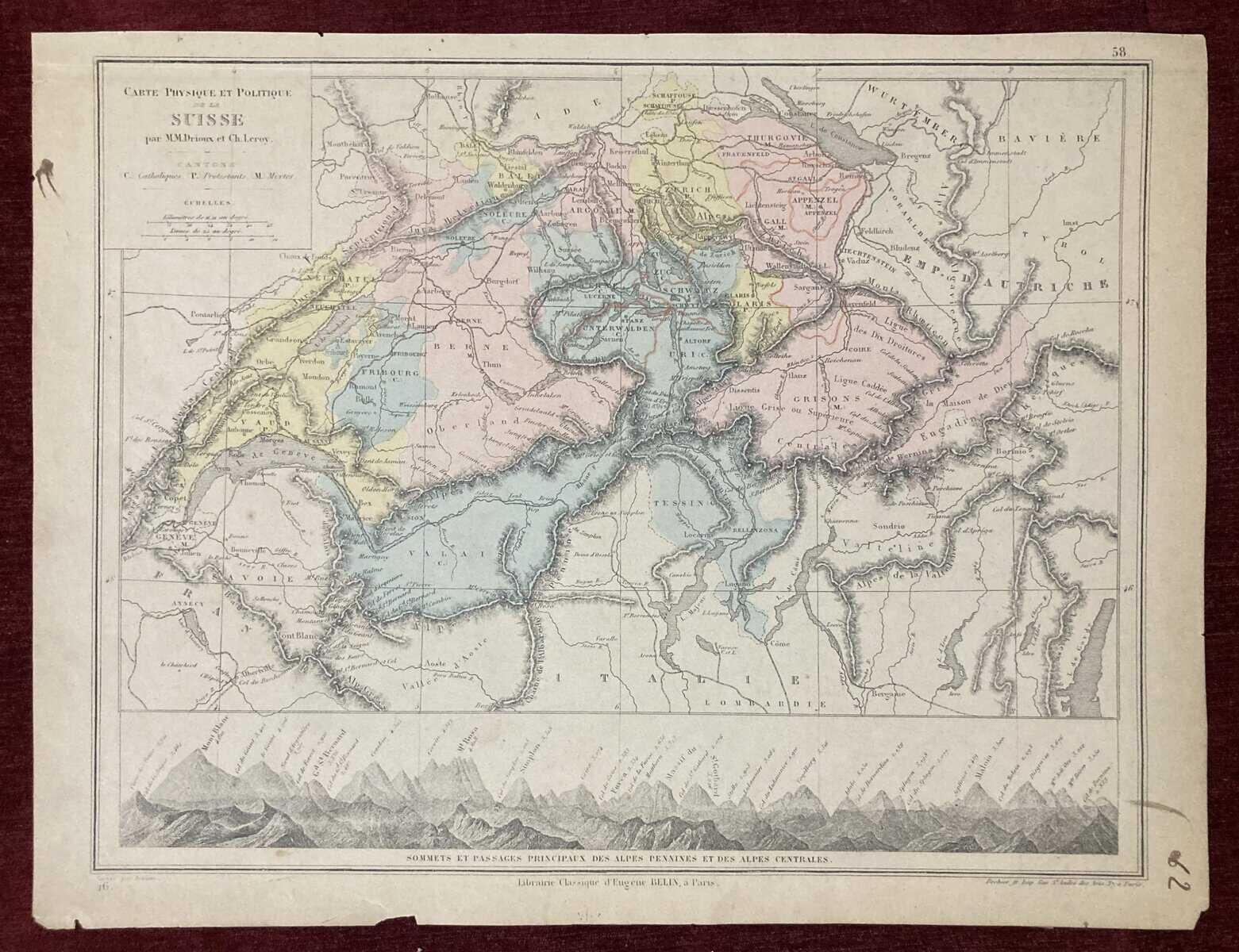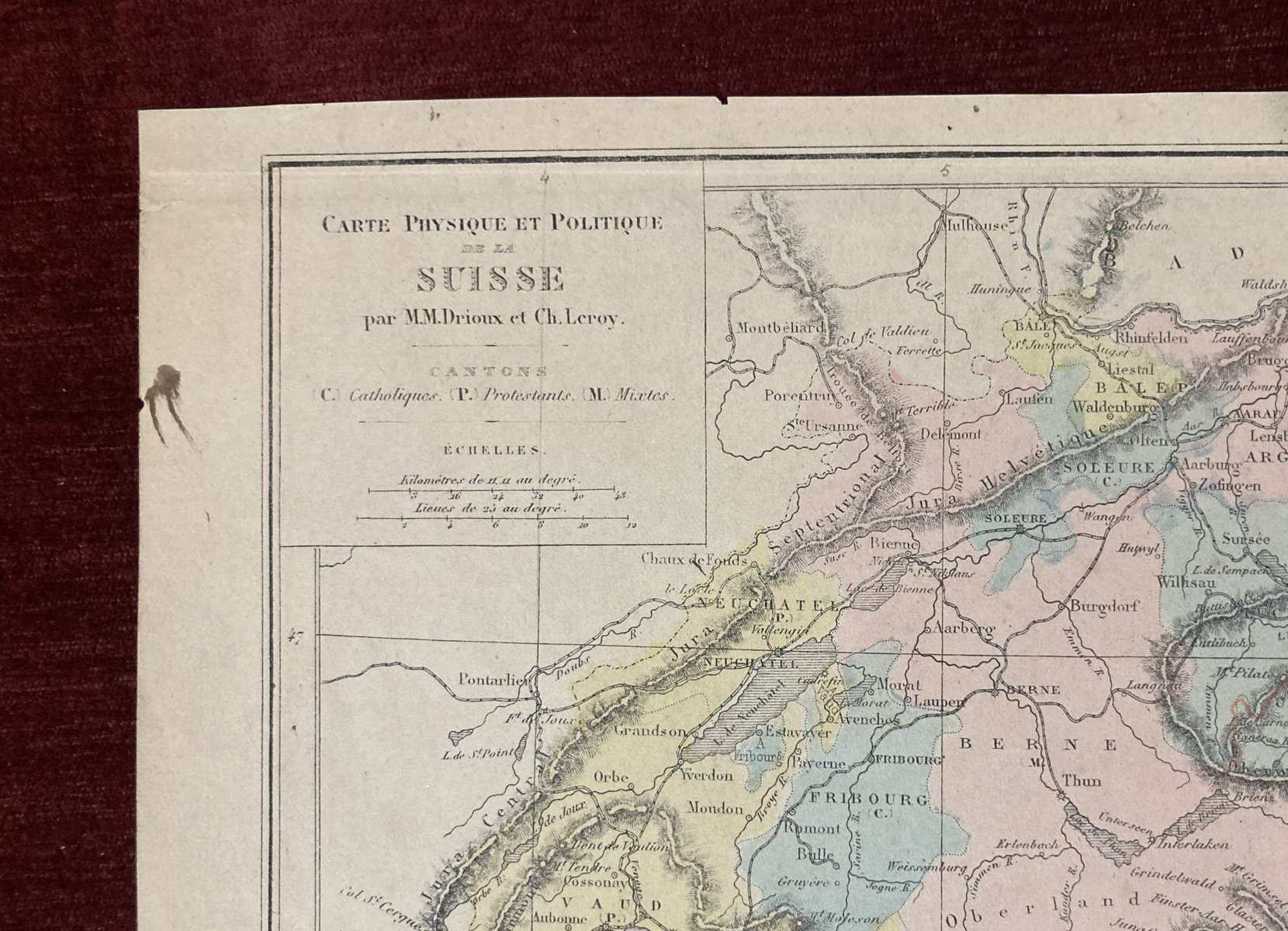 Carte physique et politique de la Suisse 1867 Jenotte Antique Map