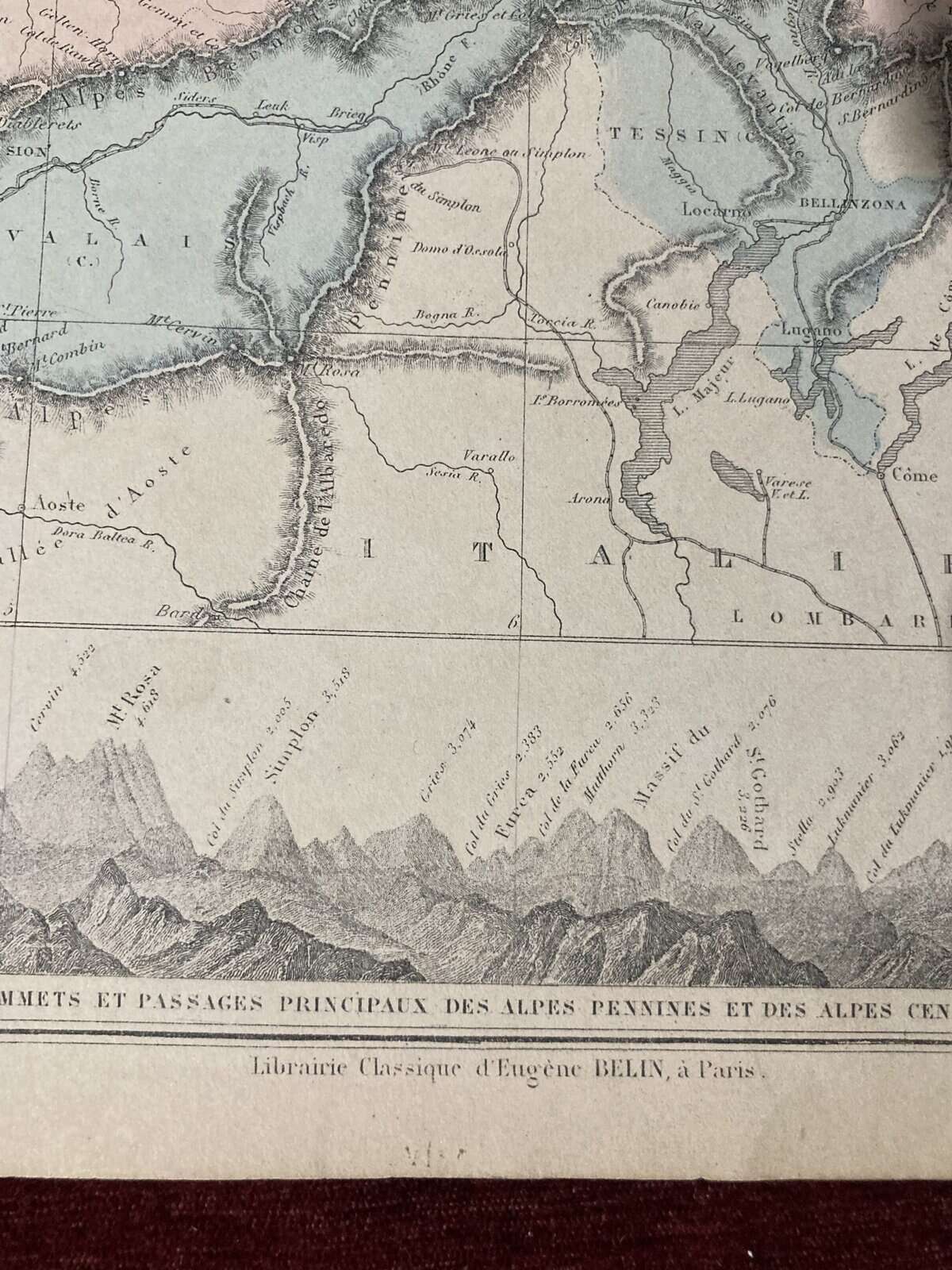 Antique steel engraved map of Switzerland, engraved by Jenotte. Published in Paris in 1867.