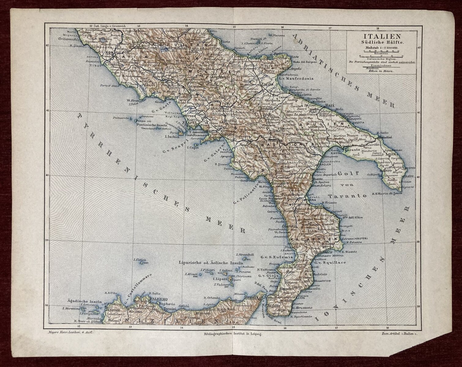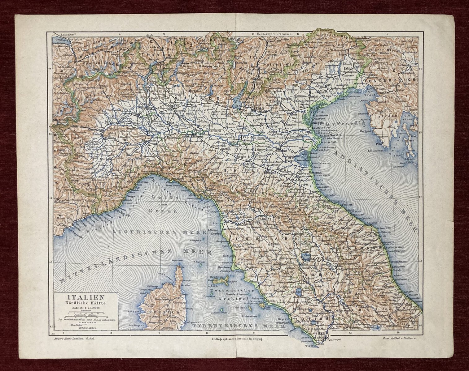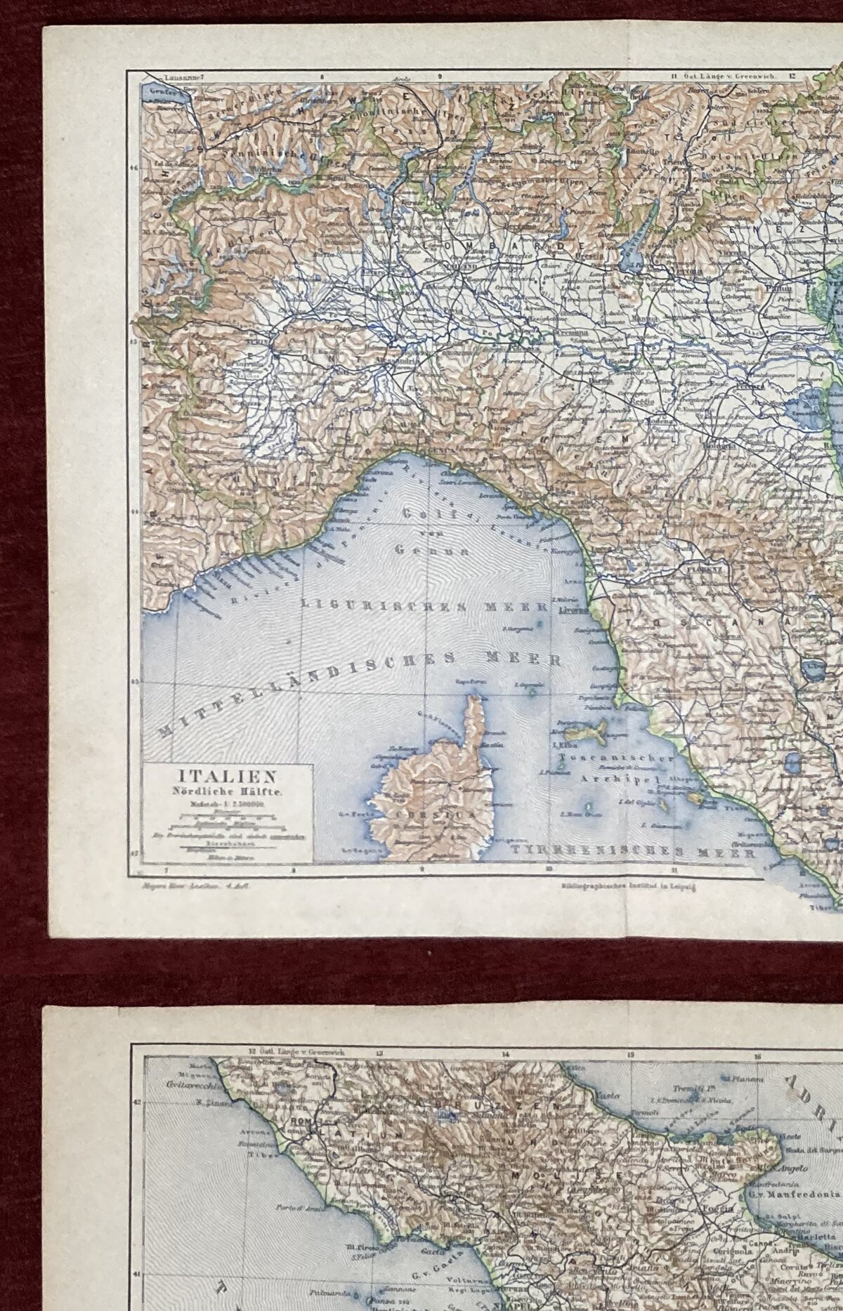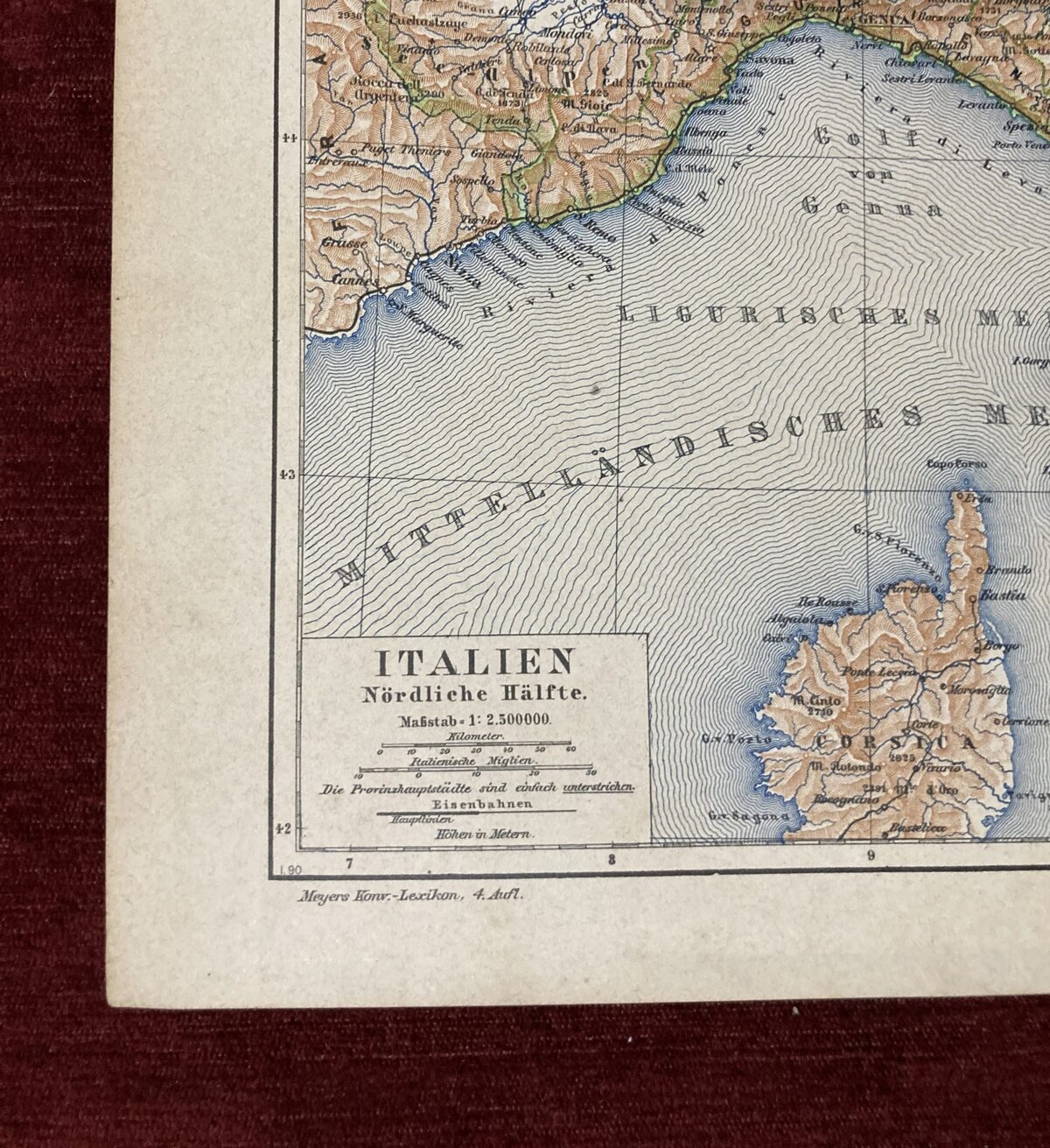 Antique Maps Italy Northern and Southern Italien Meyers Lexikon