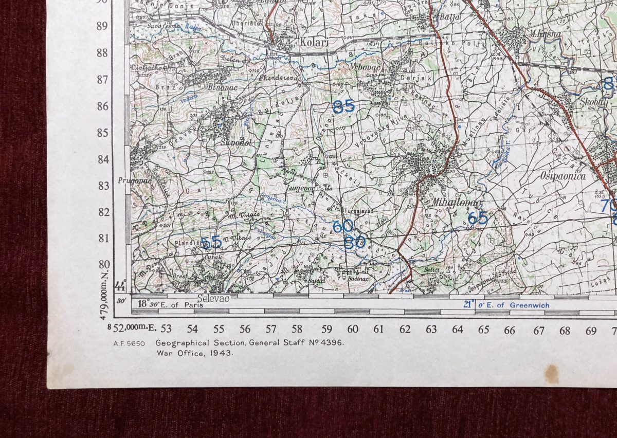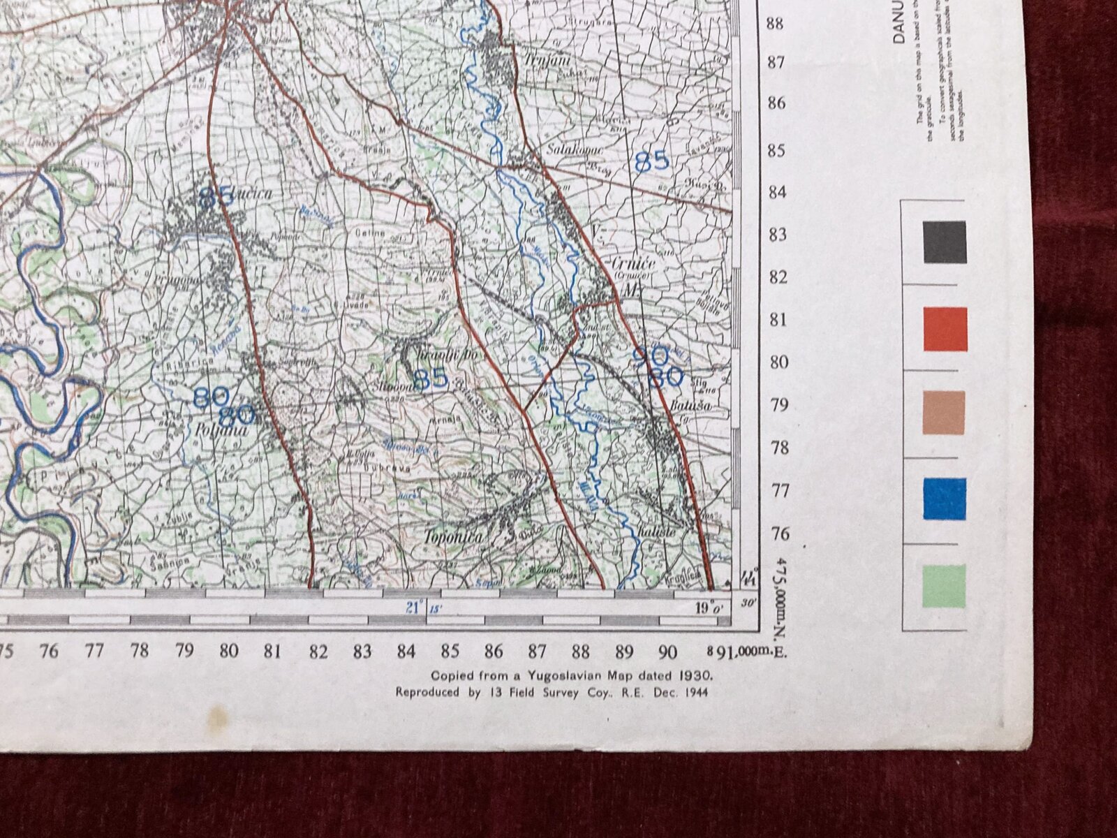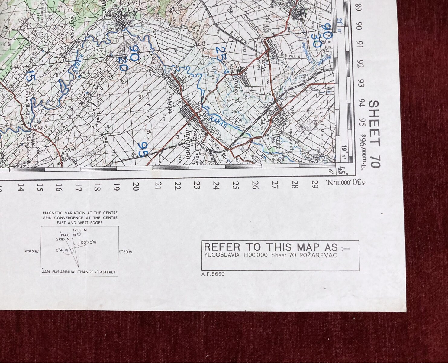 1943 Military Topographic Map Pozarevac Smederevo Braničevo Yugoslavia WWII