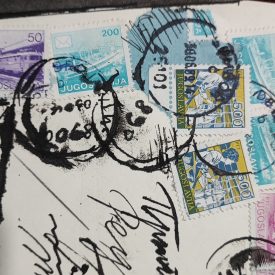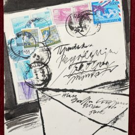 1980s Original Collage India Ink Drawing Postal Stamps Yugoslavia Serbia