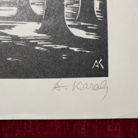 1970s Original signed woodcut Károly Andruskó Trees Landscape Forest
