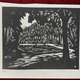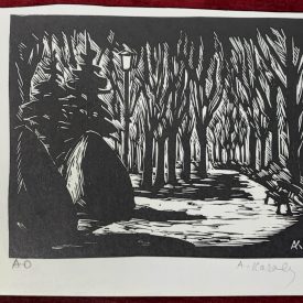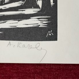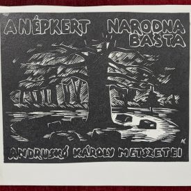 1970s Original signed woodcut Károly Andruskó National Garden Serbia Hungary