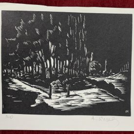 Karoly Andrusko Landscape Dark Forest Signed Klas Woodcut Art