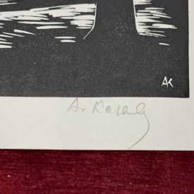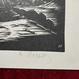 1970s Original signed woodcut Károly Andruskó Landscape Wire Fence