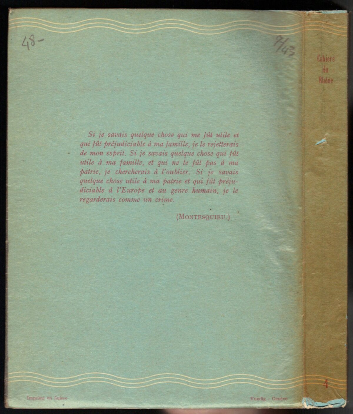 1942 Marcel Raymond Genies de France Cahier du Rhone WW2 French Literature