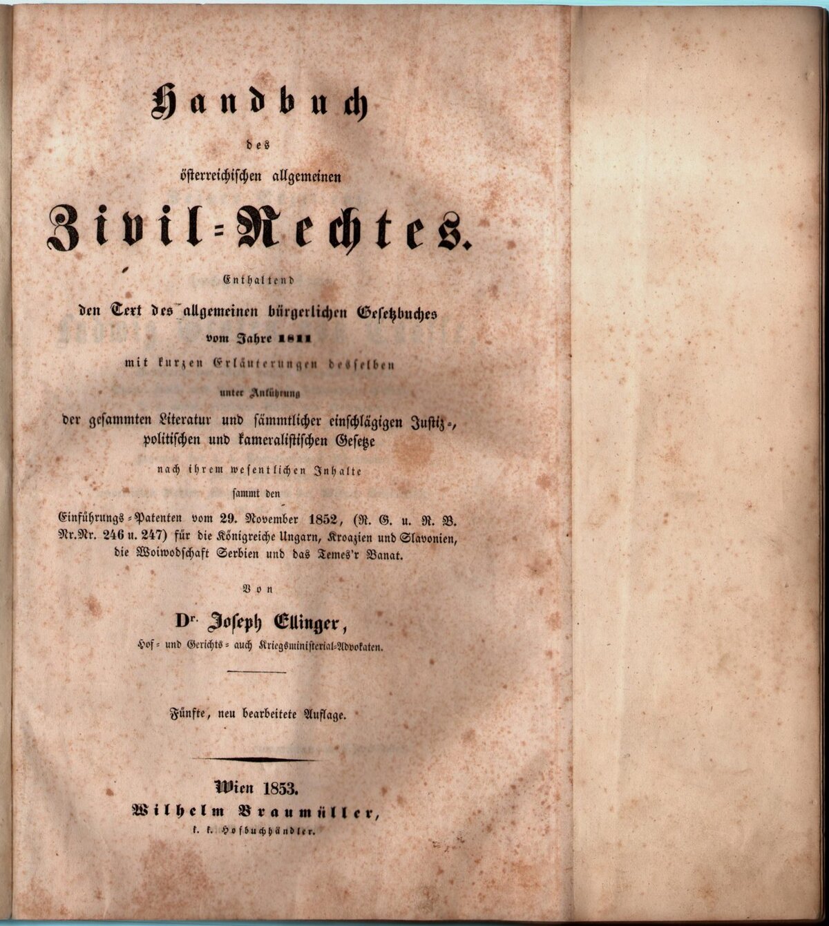 Handbook of Austrian Civil Law from mid 19th century, written by Austrian author, Joseph Ellinger.
