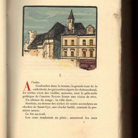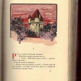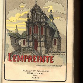 Édouard Estaunié L’EMPREINTE Collection Française; Henri Cyral, Paris, 1924. Original half leather binding. Beautiful illustrations in color (in text) by André Fournier. Numbered copy. This exemplar is the number 924, and one of the 1000 printed (and numbered) on ’Papier Vélin De Rives’. Size: 20,7 x 15,2 cm. Pp. 1l of cover page with illustration, 2l blank, /8/ with one illustration, 331, 1l. Minor stains on the cover. Untrimmed, signs of paper aging. For condition and details, see scans.