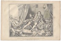 Interesting decorative print showing actor Mr. Garrick in the role of Richard III, Shakespeare piece.