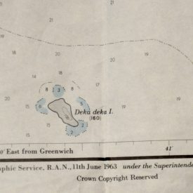 Extremely scarce nautical chart of South Pacific with the strait of China. Based on the Australian Royal Navy surveys and initially published in 1963 by the Hydrographic Service R.A.N. Numbered copy, (N0 215), reissued in 1989.