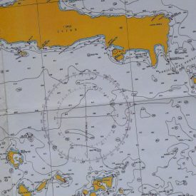 Nautical chart of the Gulf of Saros, in the Dardanelles, Turkey. The chart also includes the island of Crete. Published in Istanbul in 1994.