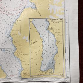Nautical chart of the Svalbard archipelago in Norway, extending from Femtebreen to Grahuken. The map also shows a closeup of Woodfjorden.