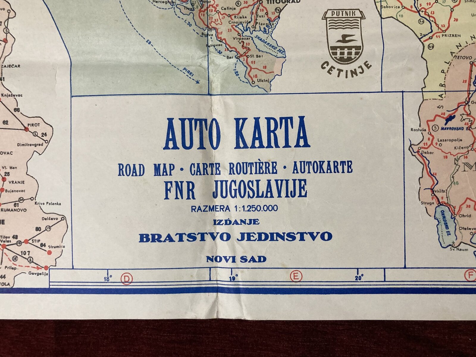 1950s Vintage Road Touristic Map Autokarte FNRJ Yugoslavia Brochure Advertising
