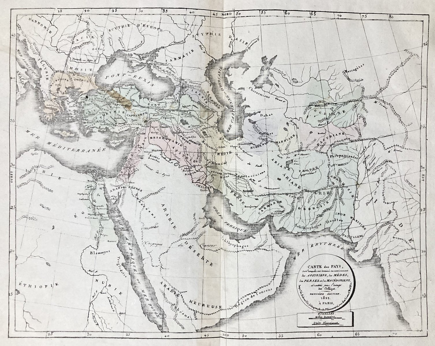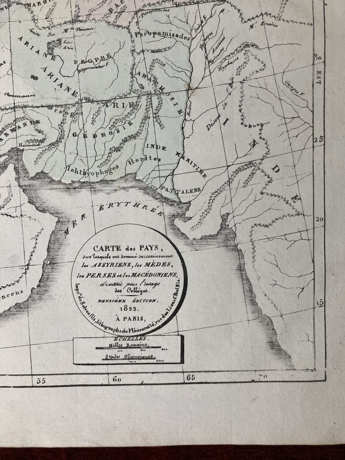 Carte de Pays, sur lesquels ont dominé successivement les Assyriens, les Mèdes, les Perses et les Macédoniens : dressée pour l’usage des Colléges, Deuxième Édition, 1822 À Paris