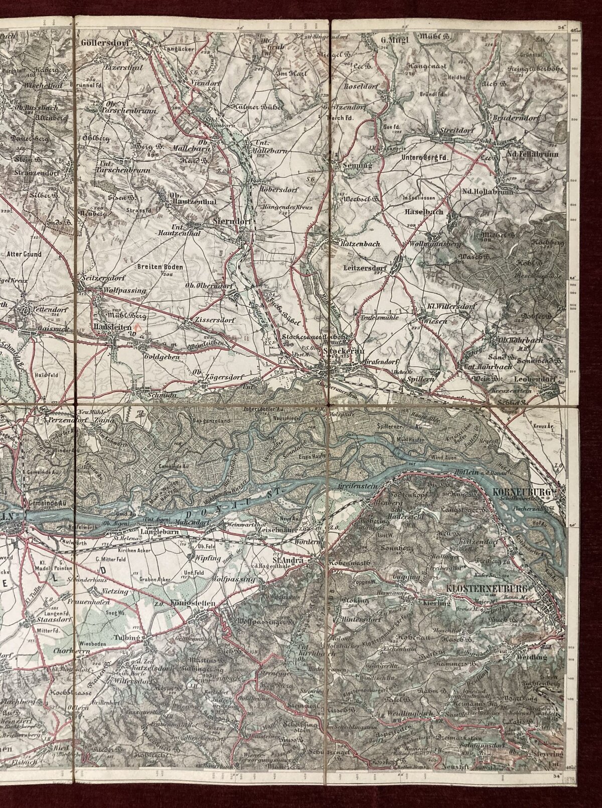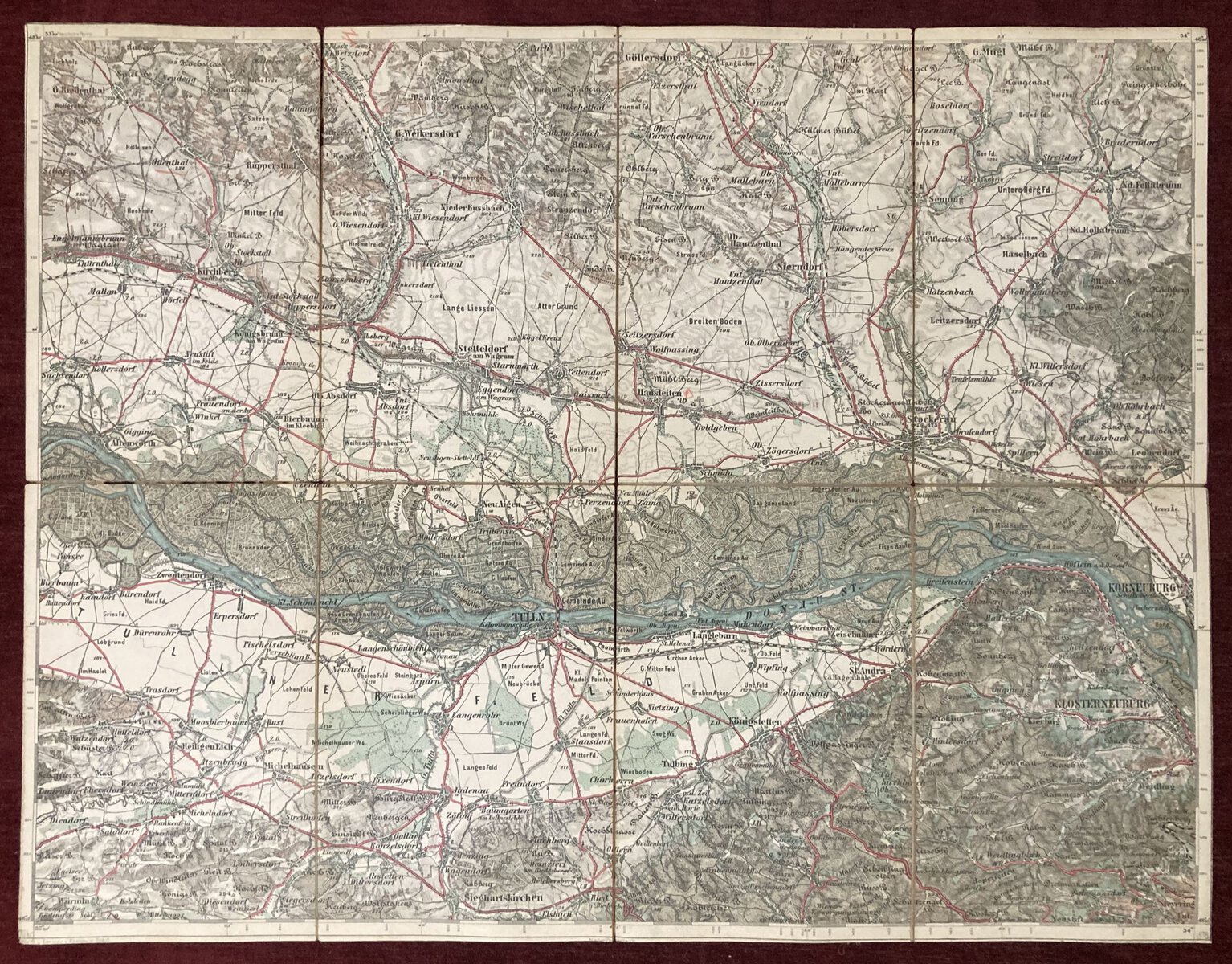 1878 Original Cloth Military Detailed Map Tulln Donau Osterreich Austria Hungary