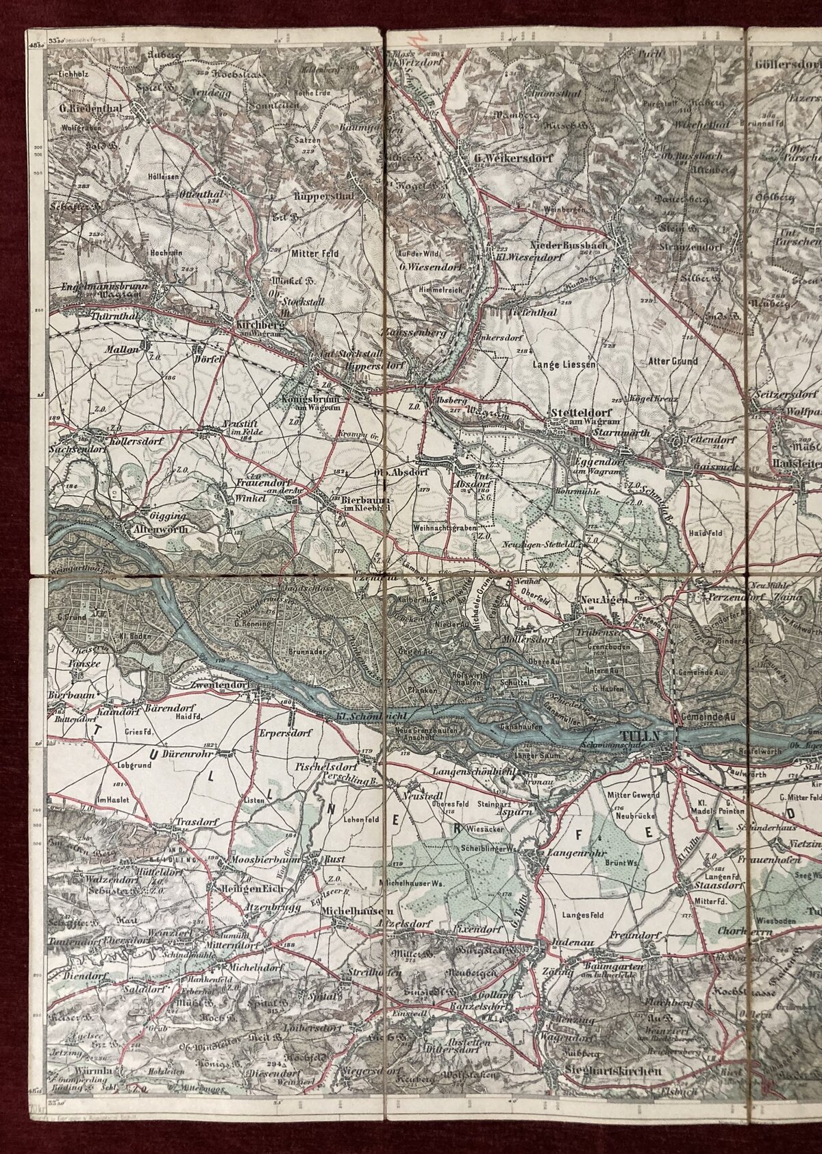 Tulln an der Donau 1878 Original Cloth Military Detailed Map Osterreich Austria Hungary
