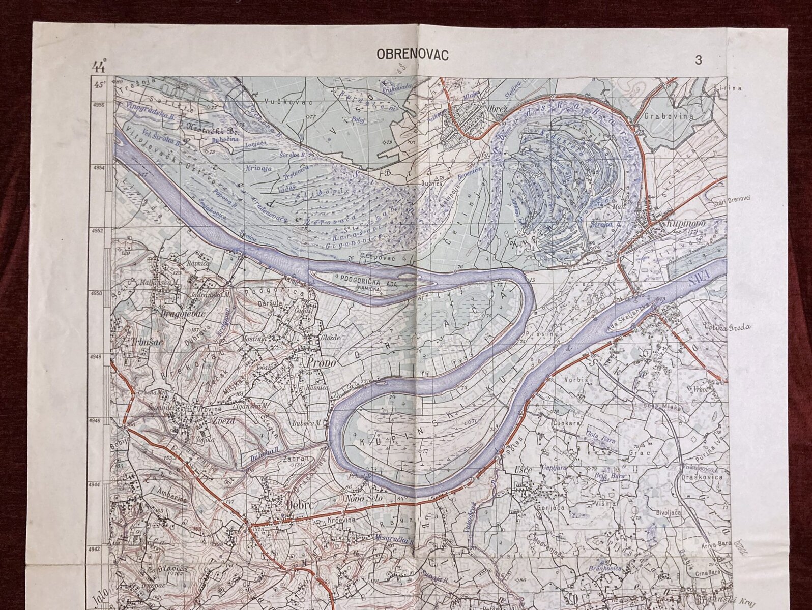 1952 Original Military Topographic Map Obrenovac Sava Serbia Yugoslavia