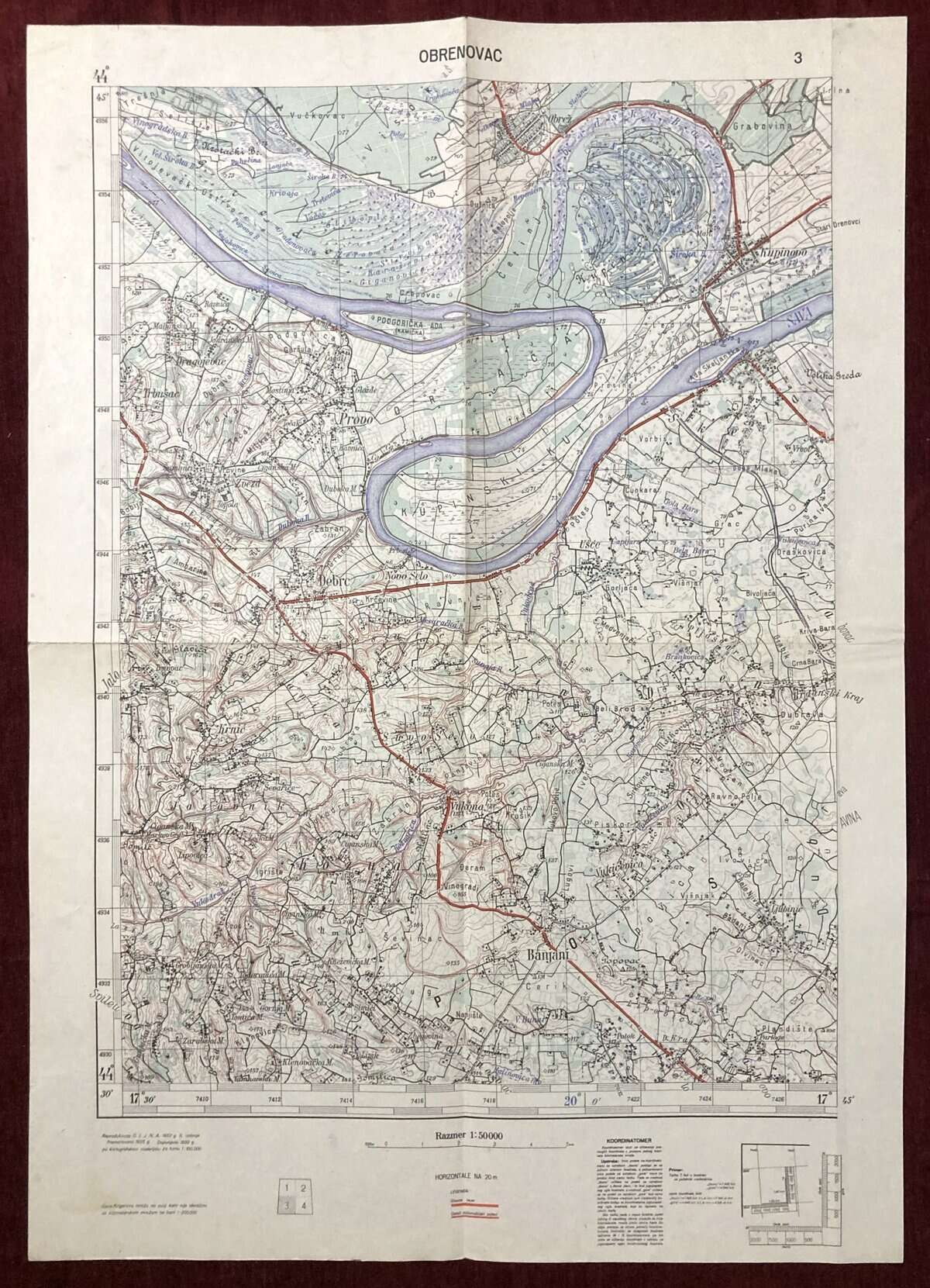 Original Military Topographic Map of Obrenovac (Serbia, Yugoslavia) A rare, original detailed topographic military map.