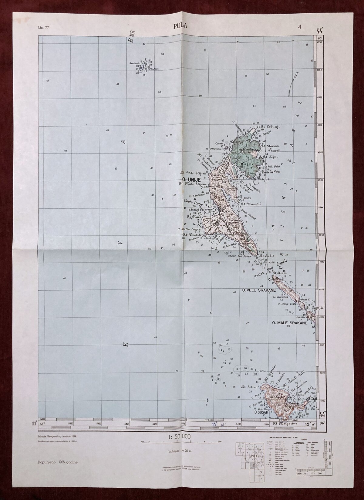 Original Military Topographic Map Pula (Croatia, Yugoslavia) A rare, original detailed topographic military map.