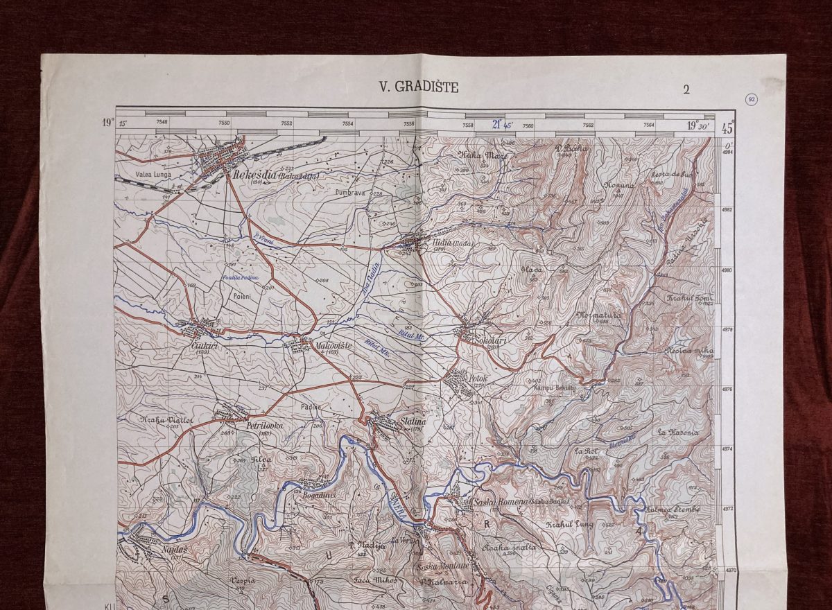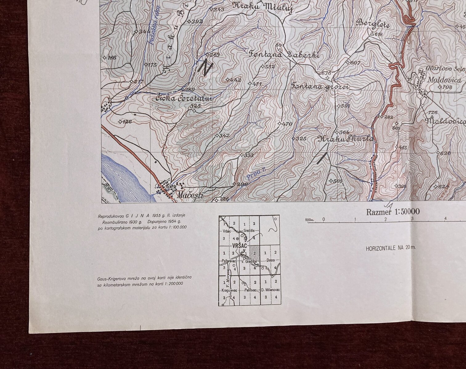1955 Original Military Topographic Map Veliko Gradiste Serbia Yugoslavia Romania