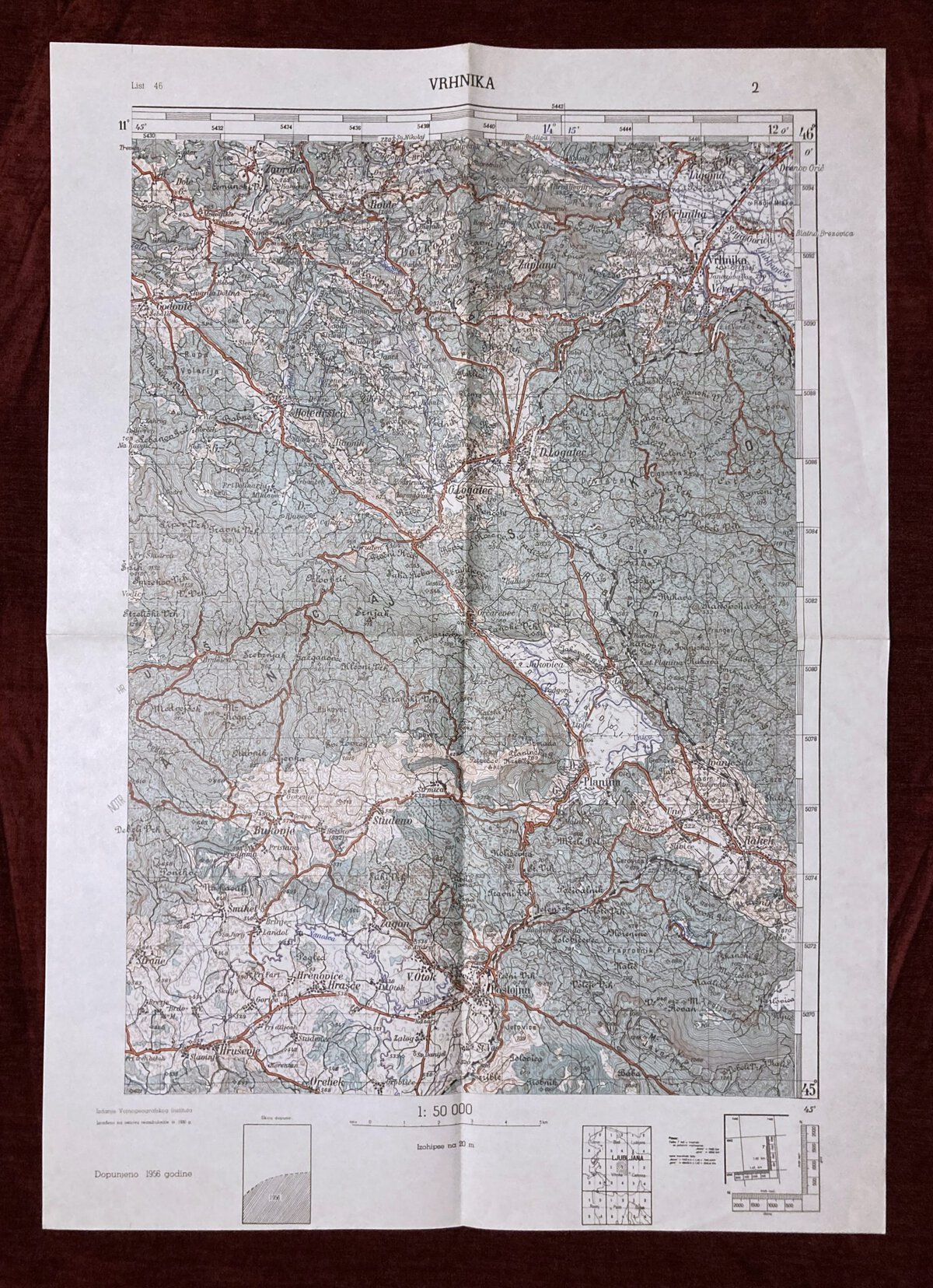 1956 Military Topographic Map Vrhnika Postojna Oberlaibach Slovenia Yugoslavia