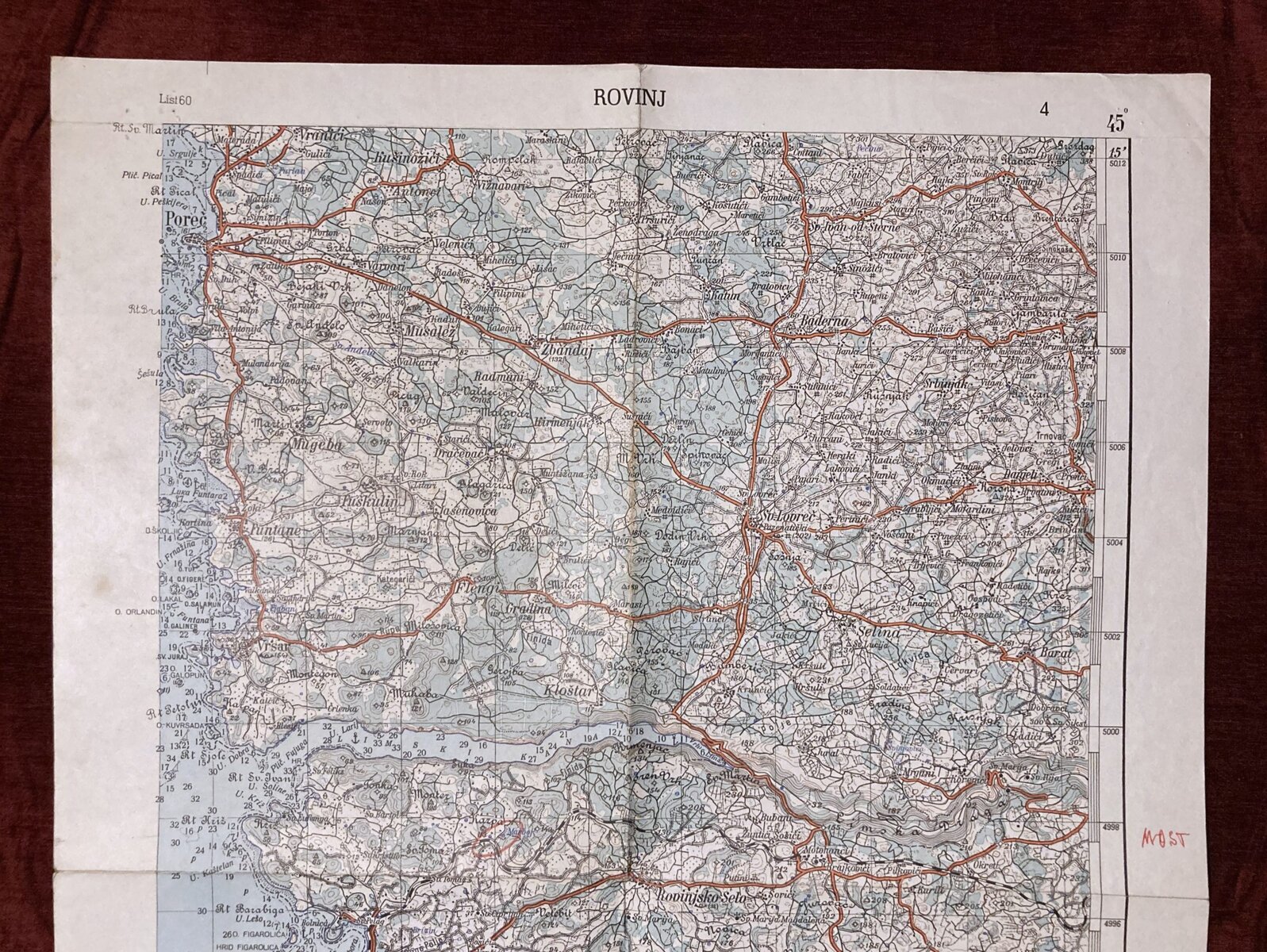 Original Military Topographic Map Rovinj (Croatia, Yugoslavia) A rare, original detailed topographic military map.
