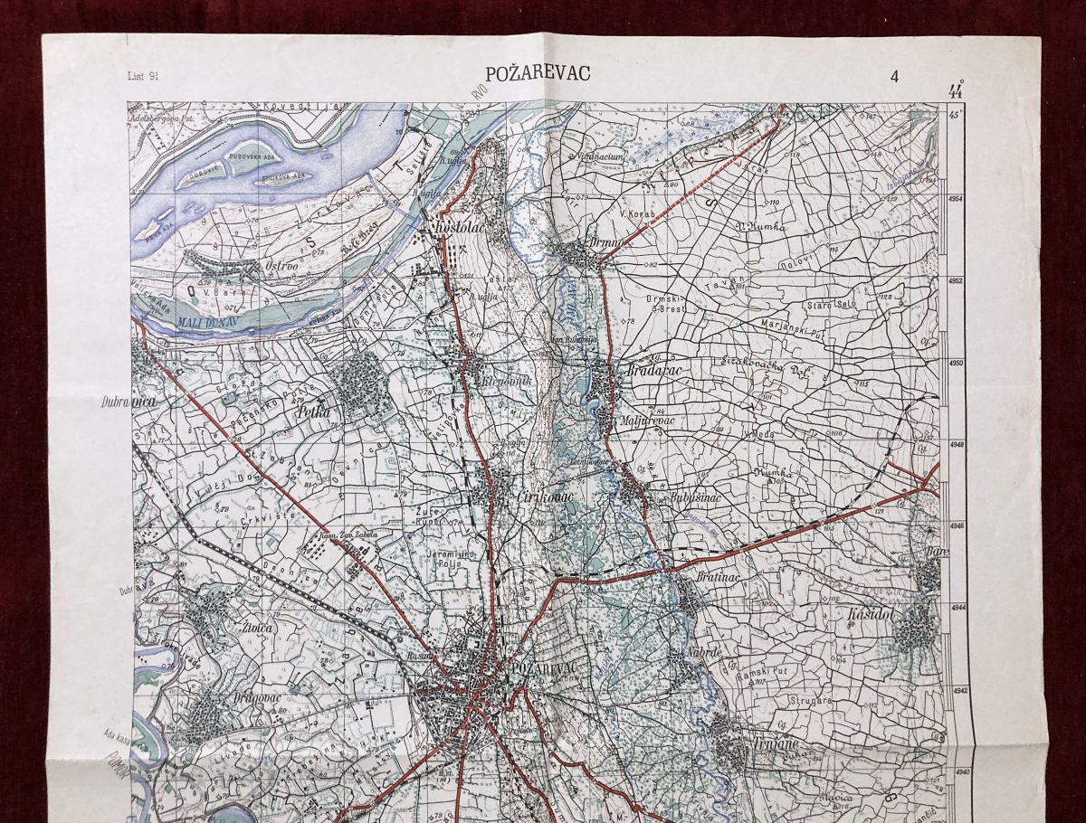 Original Military Topographic Map of Požarevac (Serbia, Yugoslavia) A rare, original detailed topographic military map.