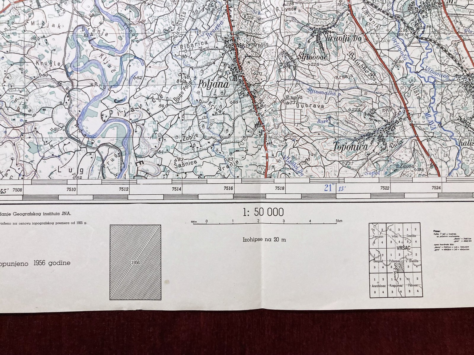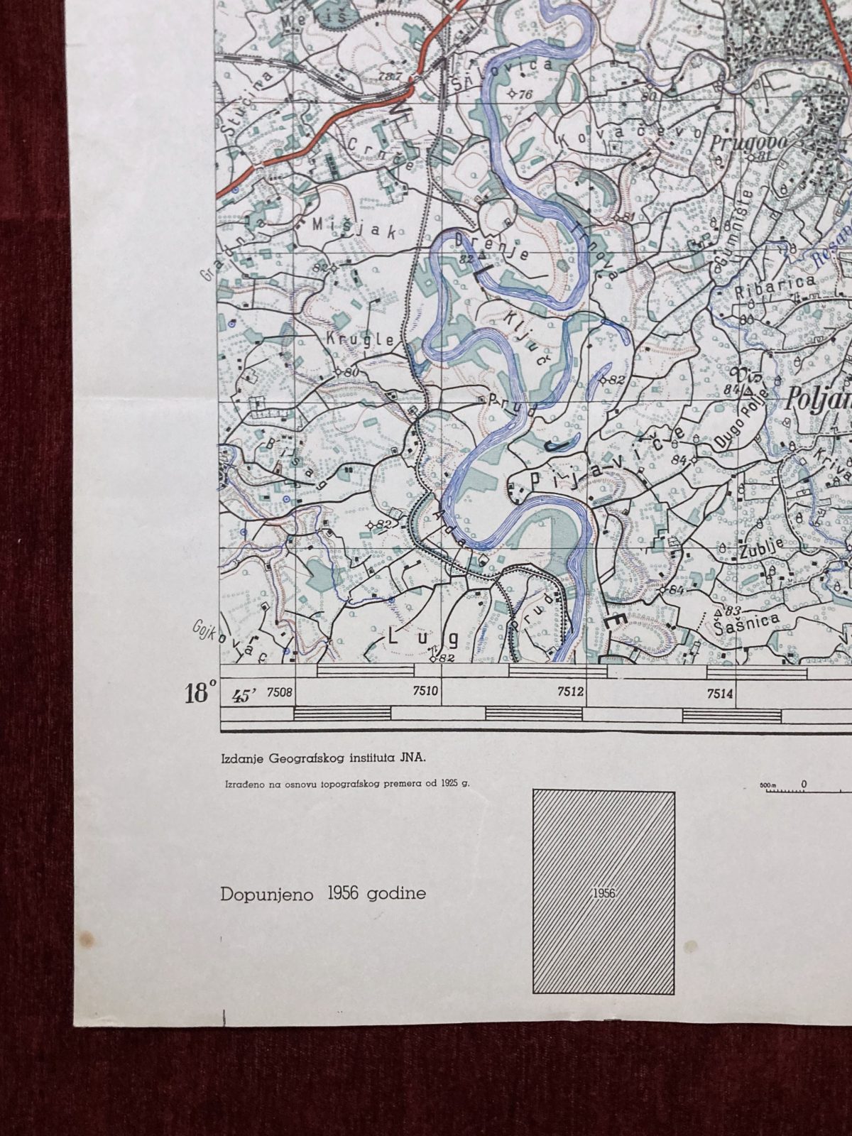 Printed by Војногеографски институт, Београд (Military Geographical Institute) in Belgrade, Serbia. Map of the Југословенске народне армије (Yugoslav People’s Army).