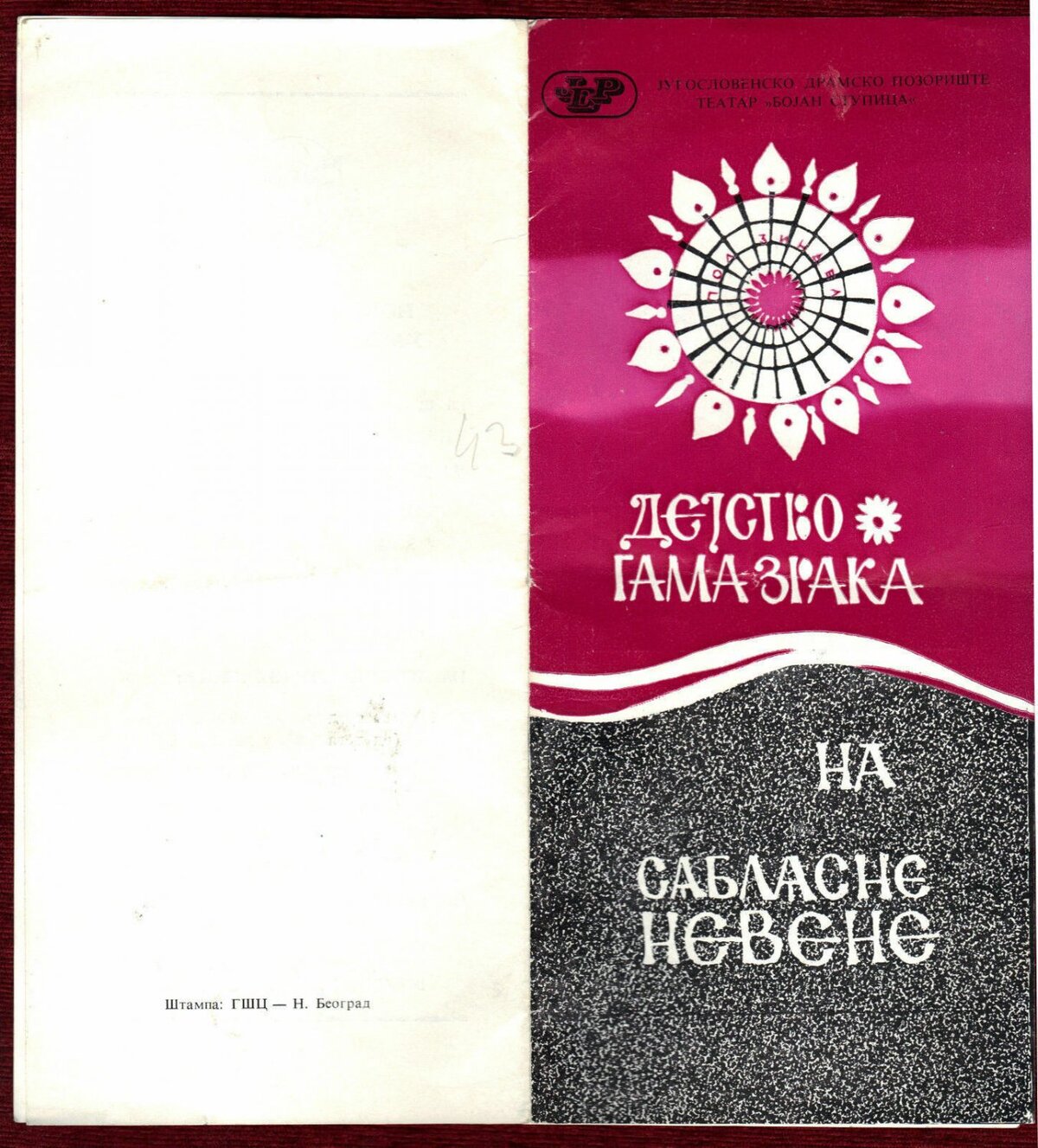 An original vintage theater program printed by Yugoslavian Theater (JDP) to promote a play performed on a Bojan Stupica scene in 1972.