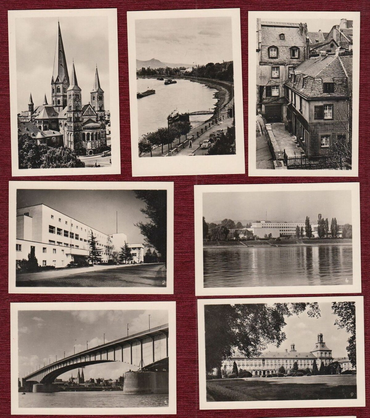 Old postcard-photo album, showing the landmarks of the city of Bonn, Germany. It contains 10 photo views.