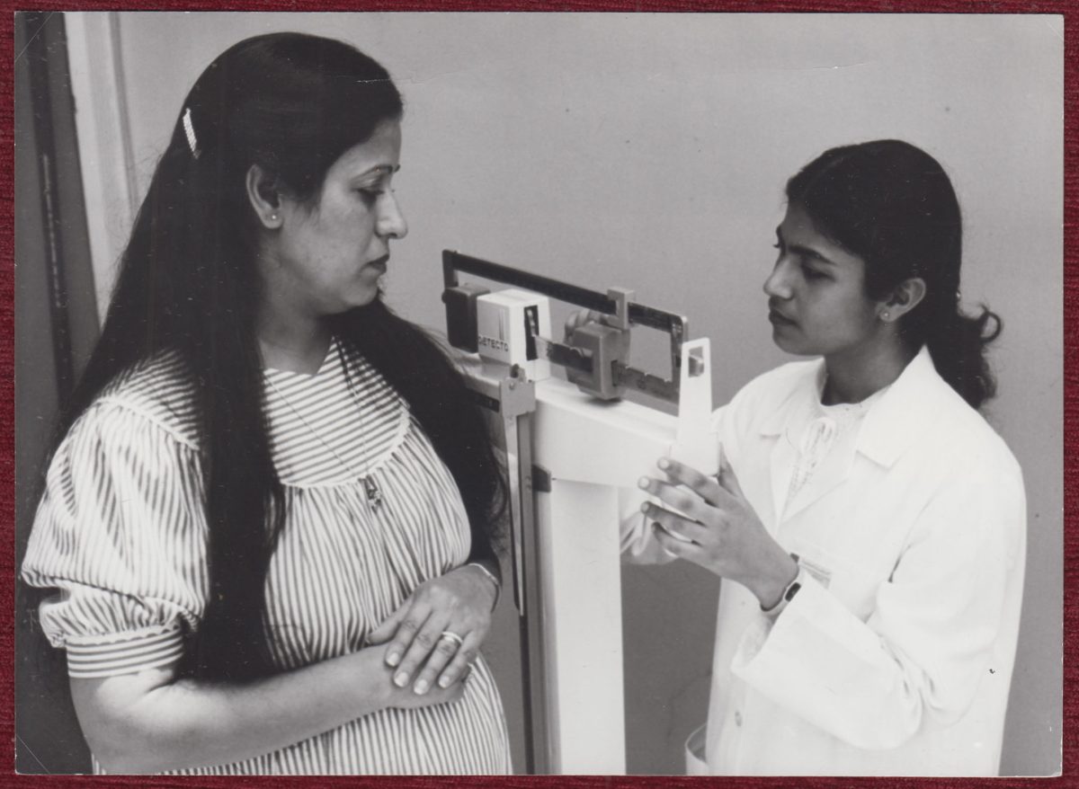 Press Photo Bahrain Woman Maternity Examination Hospital T. Kelly 1984