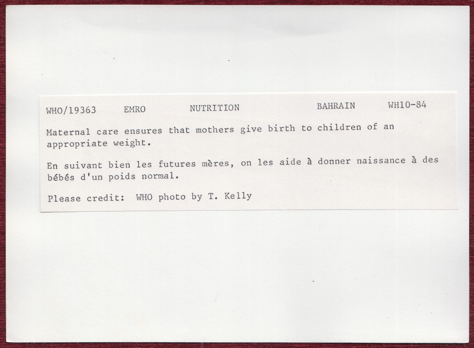 Subject: Maternal care in Bahrain