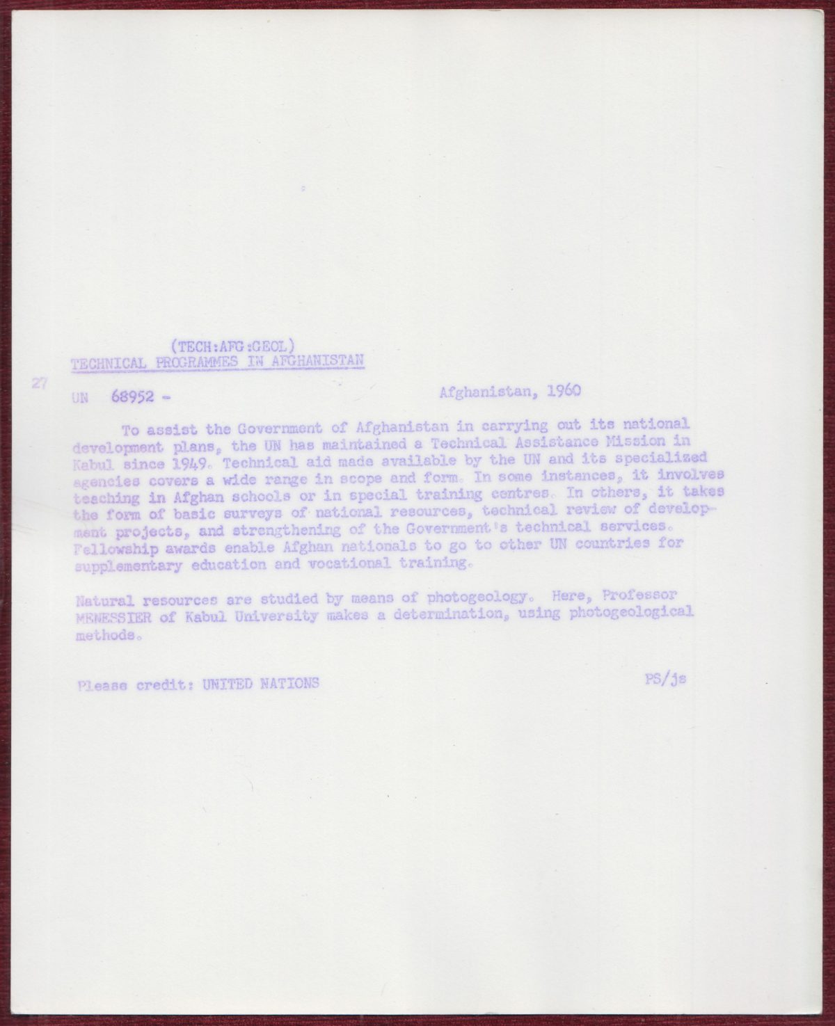 1960 Original Press Photo Menessier Afghanistan Photogeology Technology Science