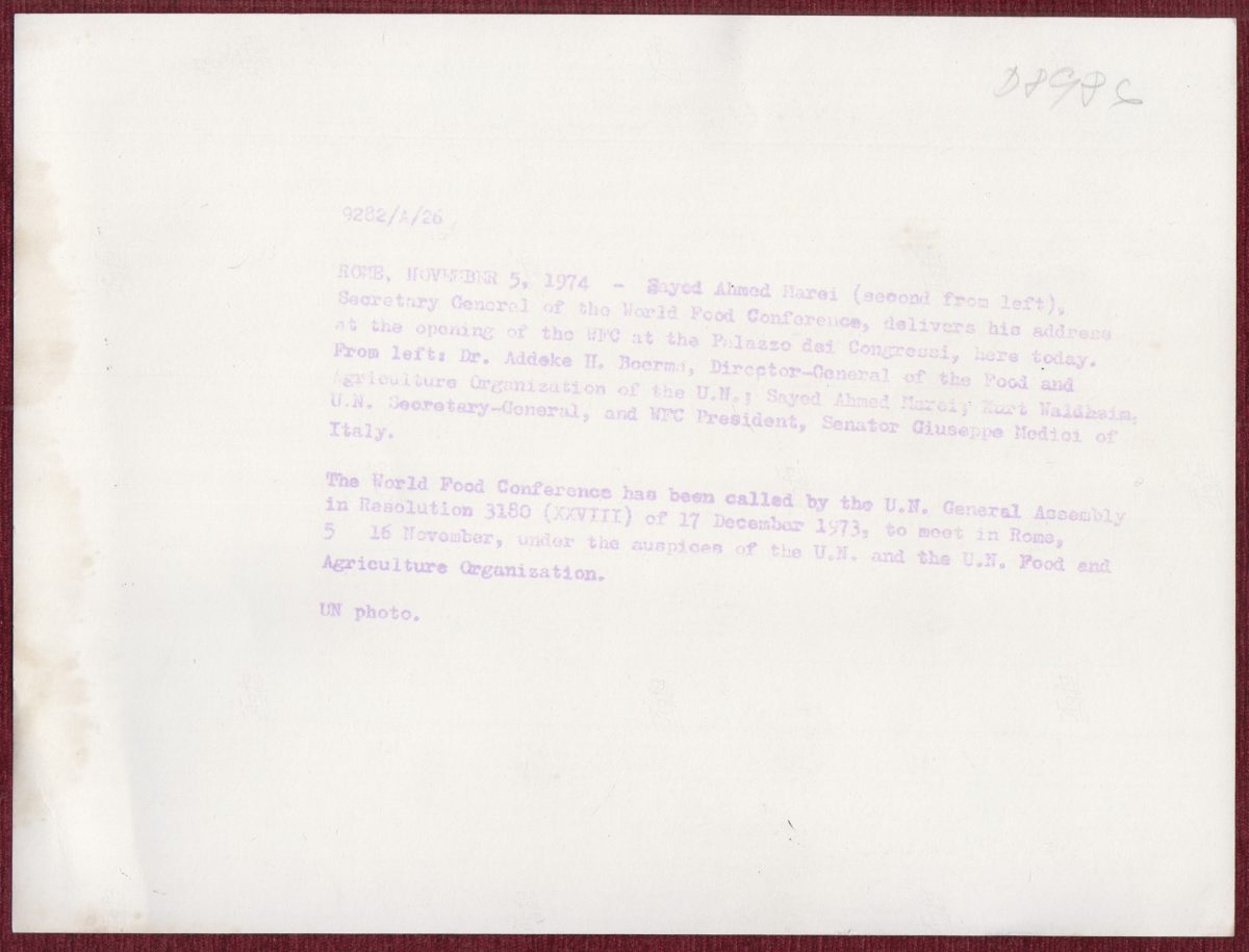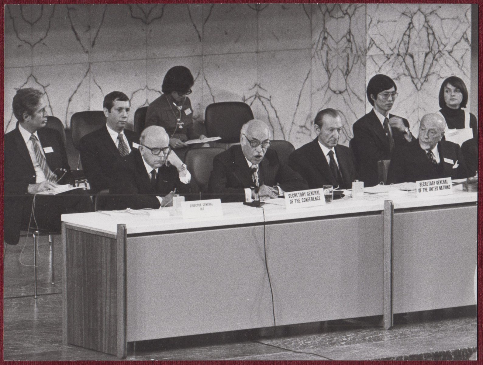 Sayed Ahmed Harei, Dr. Addeke H. Boerma, Kurt Waldheim, Giuseppe Medici.