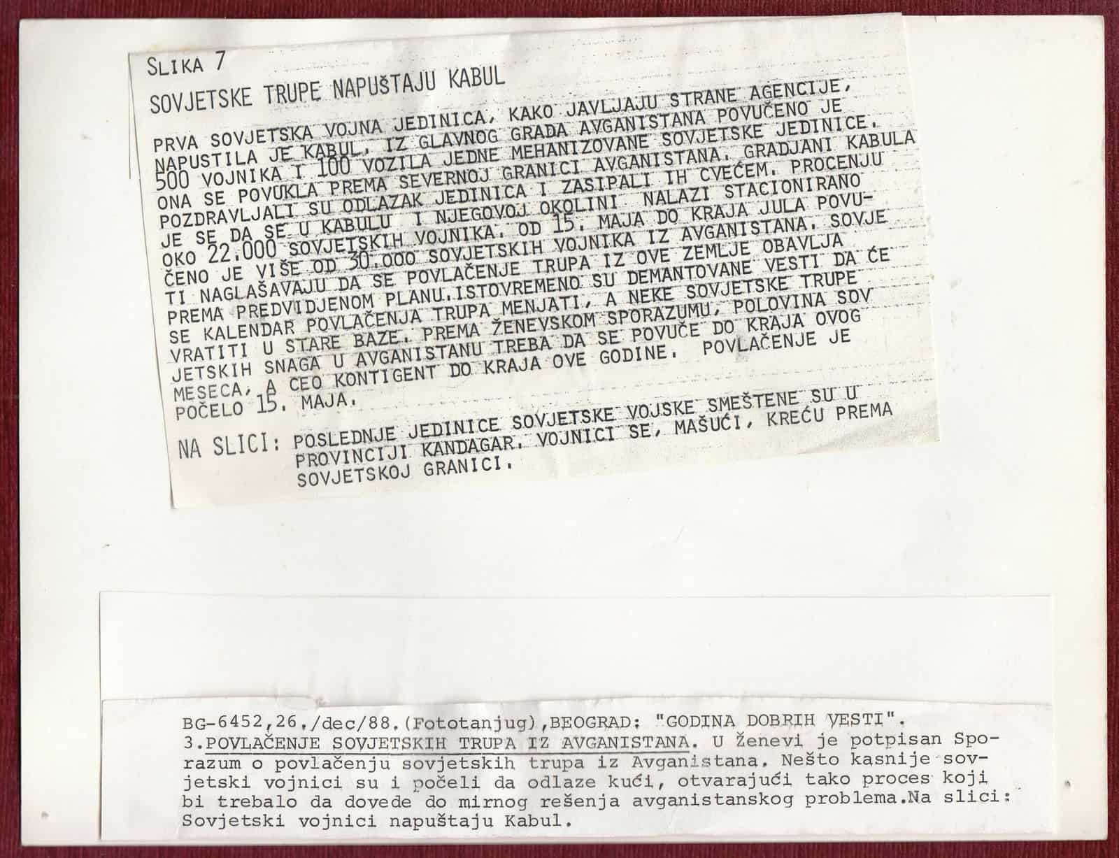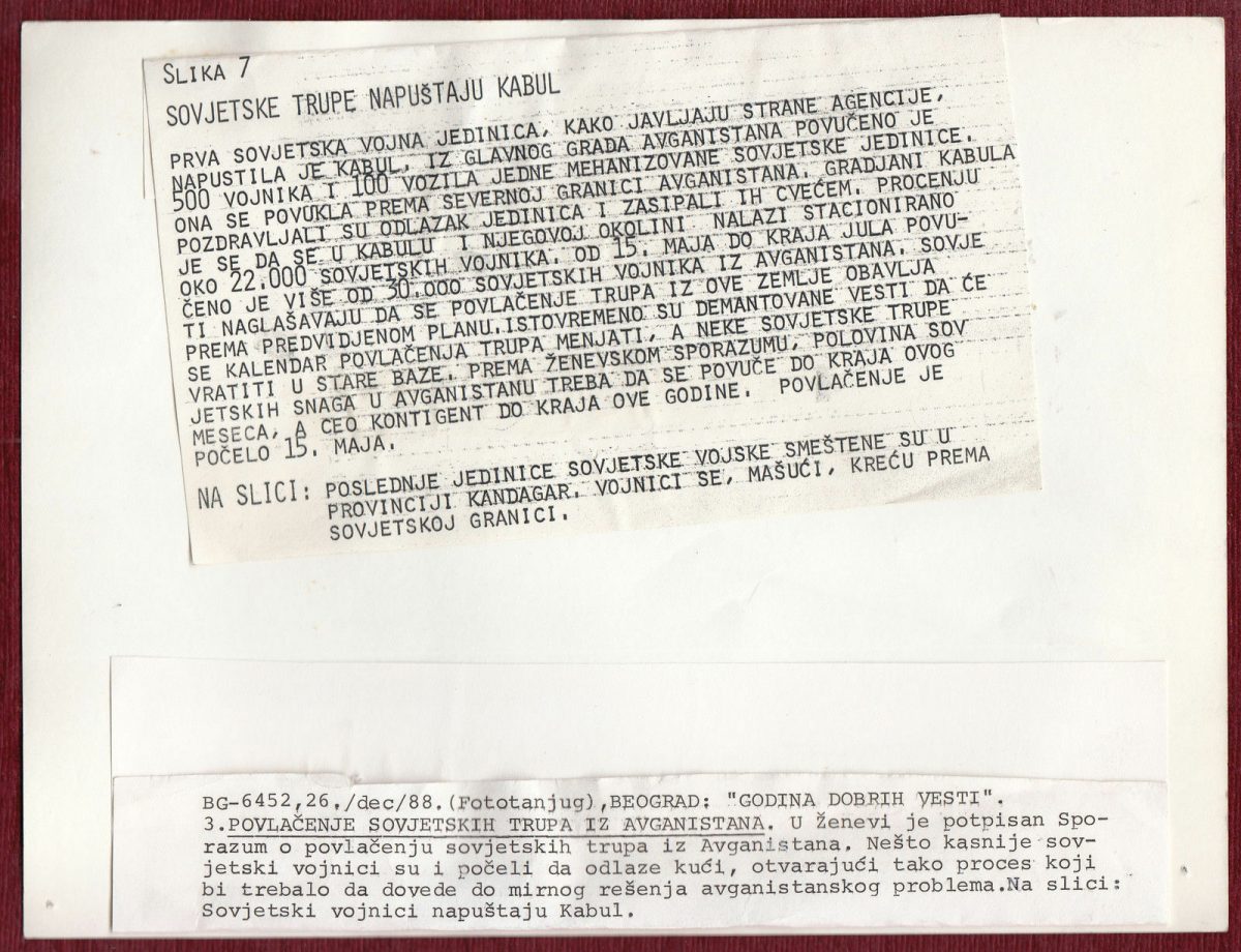 Original press photo    of   last of the Soviet troops leaving Kabul, Afghanistan. Photograph: Fototanjug, Belgrade. Year made: 1988. Size: 24 x 18,3 Condition: Very good. Please, see scans. Imperfections (if any) visible on the pictures.