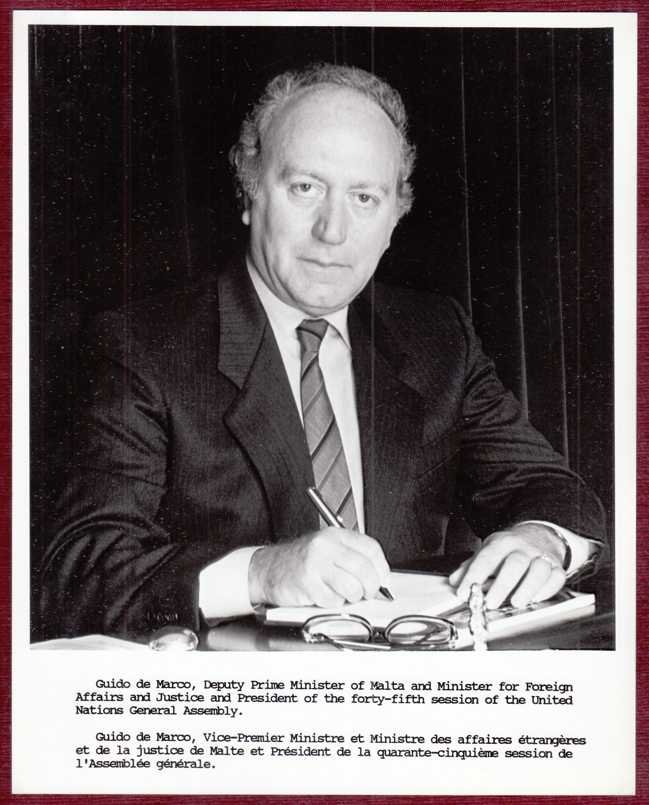 Original press photo showing the portrait of Guido de Marco, Deputy Prime Minister of Malta and Minister for Foreign Affairs and Justice.