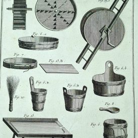 Antique prints from Diderot's Encyclopedia depicting a diamond cutting workshop and crowns.