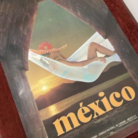 Original Travel Poster Mexico Girl on a Beach Sea Sunset