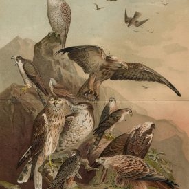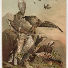 Red Kite Bird Antique Lithograph Milvus Aves Rare
