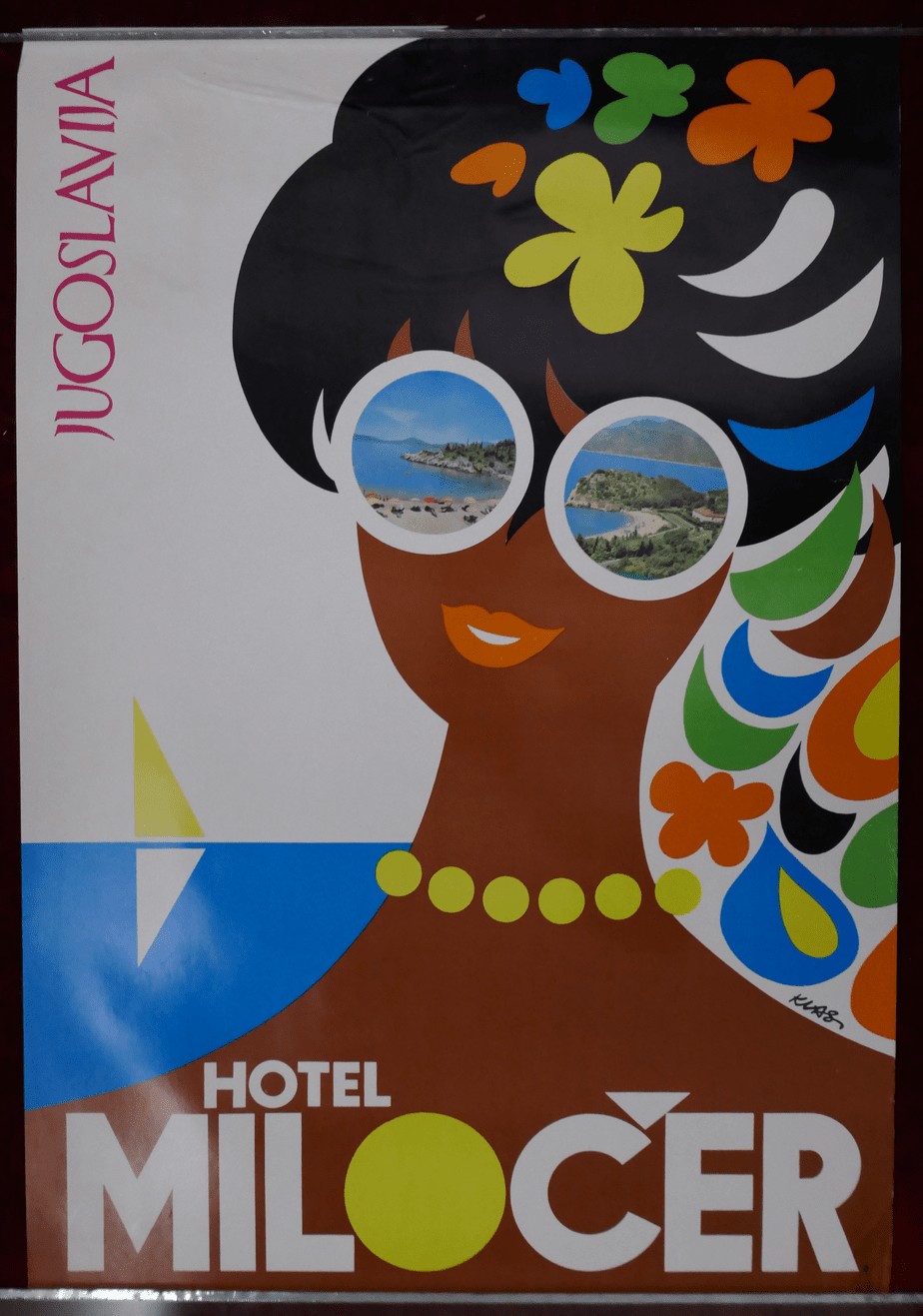 Vintage Poster from Yugoslavia designed by Aleksandar Klas for the Miločer Hotel.